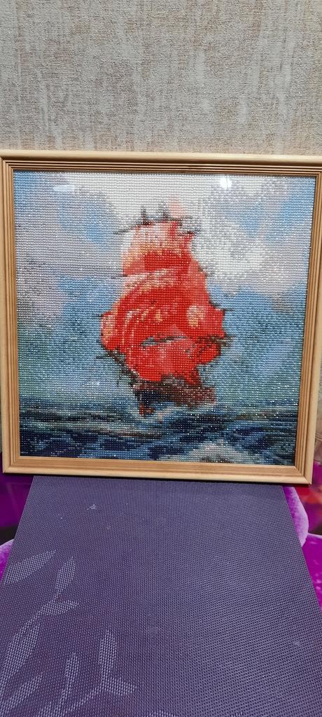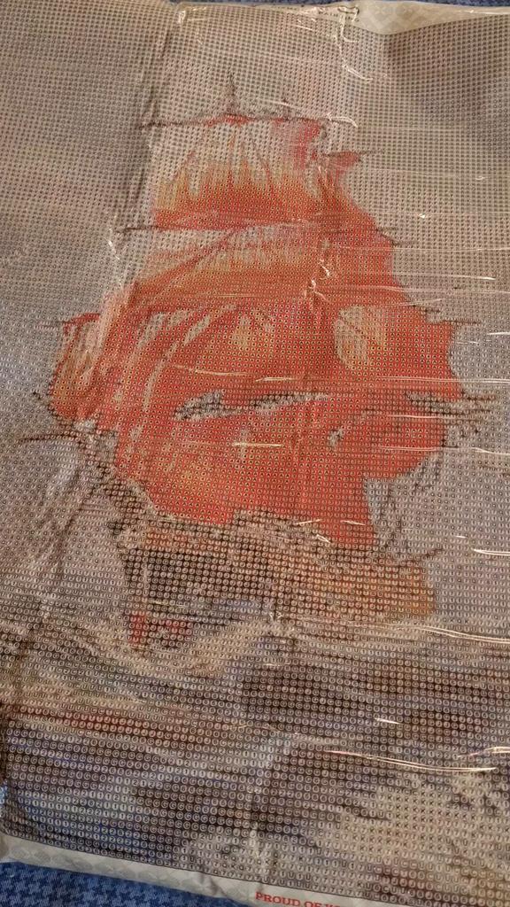 The picture, or rather the canvas is crumpled. Rolled up, and there are folds across. After I collect the picture I will add it.