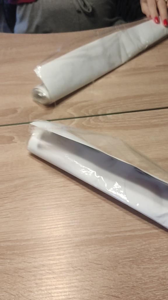 All crumpled, the ends are coming off, the glue on them has practically dried out, impossible to apply, doesn't hold, peels off