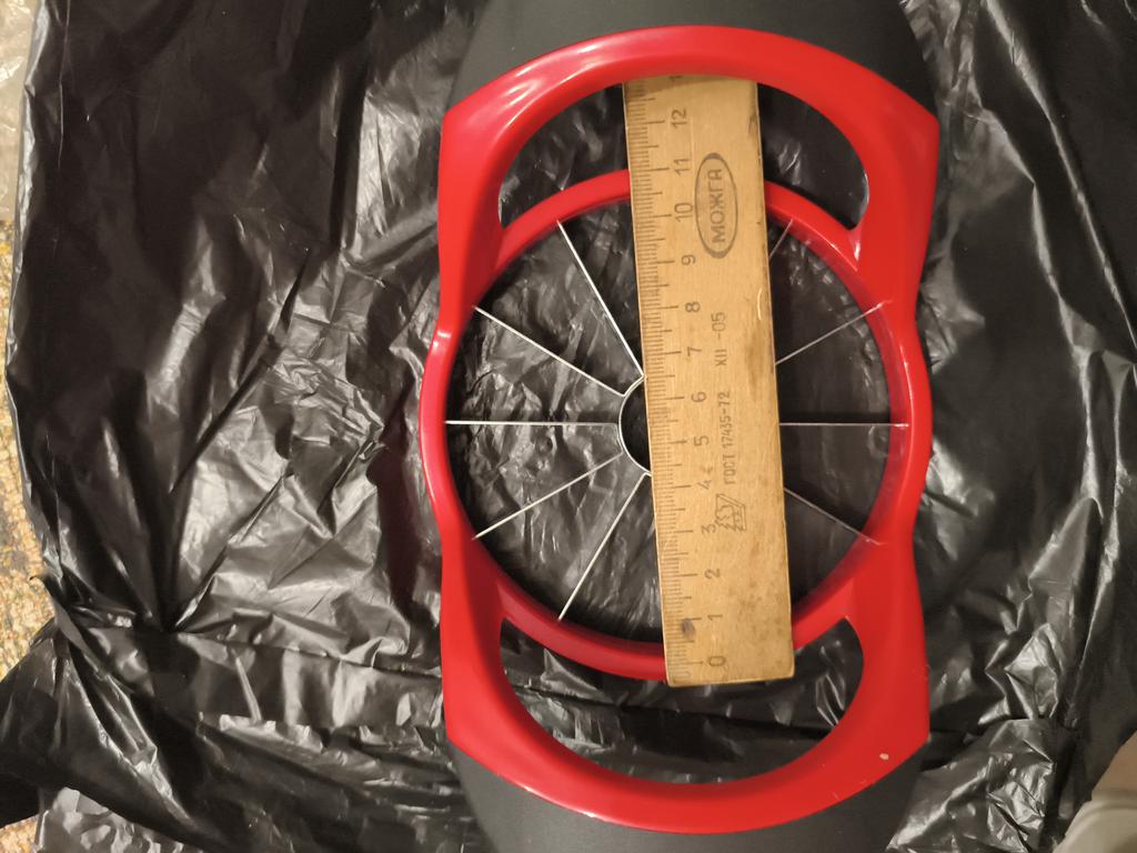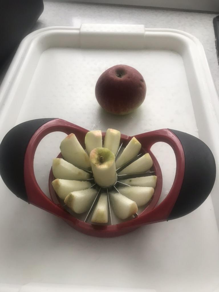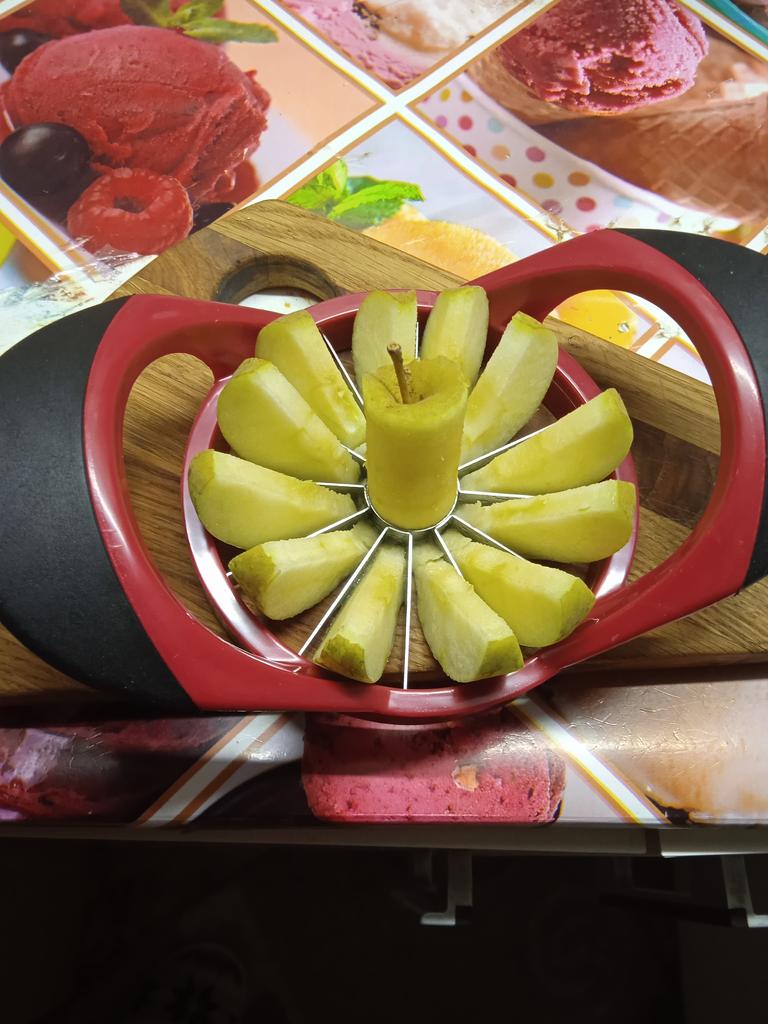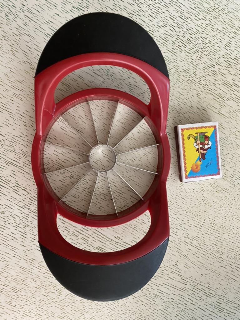 Looks like a good slicer. The size is for very large apples, but I think different apples can be cut. We will see the reliability of the construction during use.
