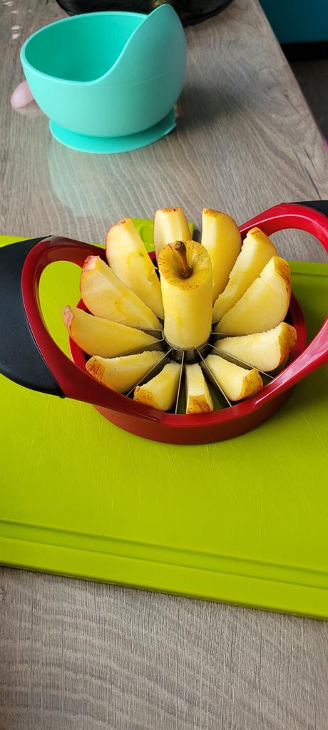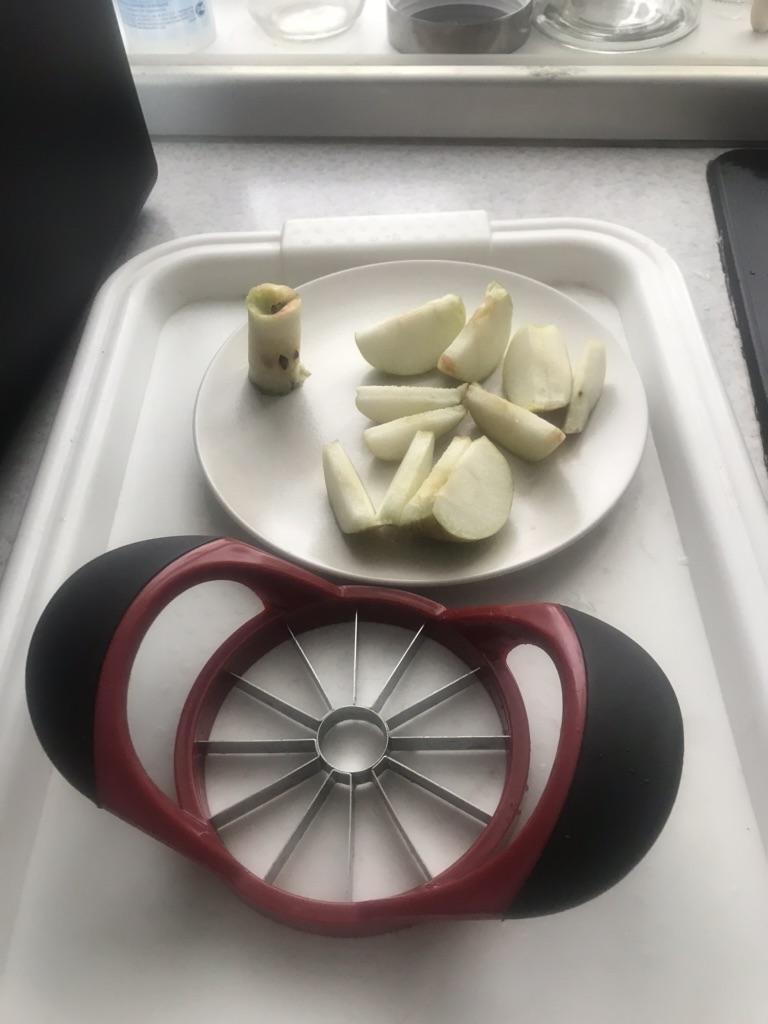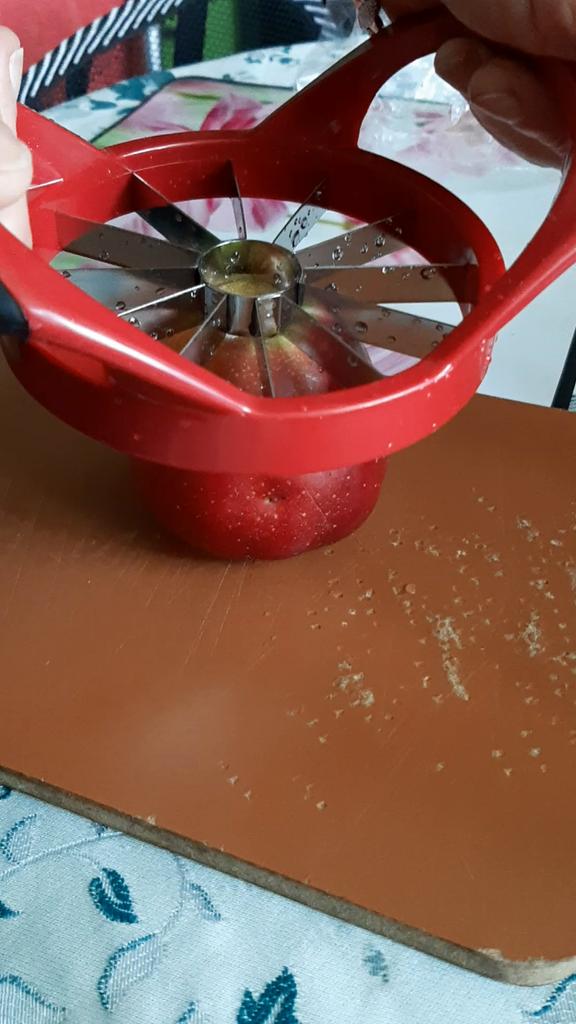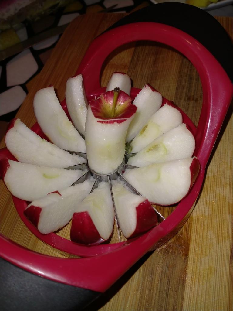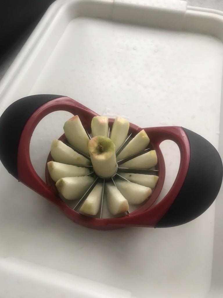 Looks like a good slicer. The size is for very large apples, but I think different apples can be cut. We will see the reliability of the construction during use.