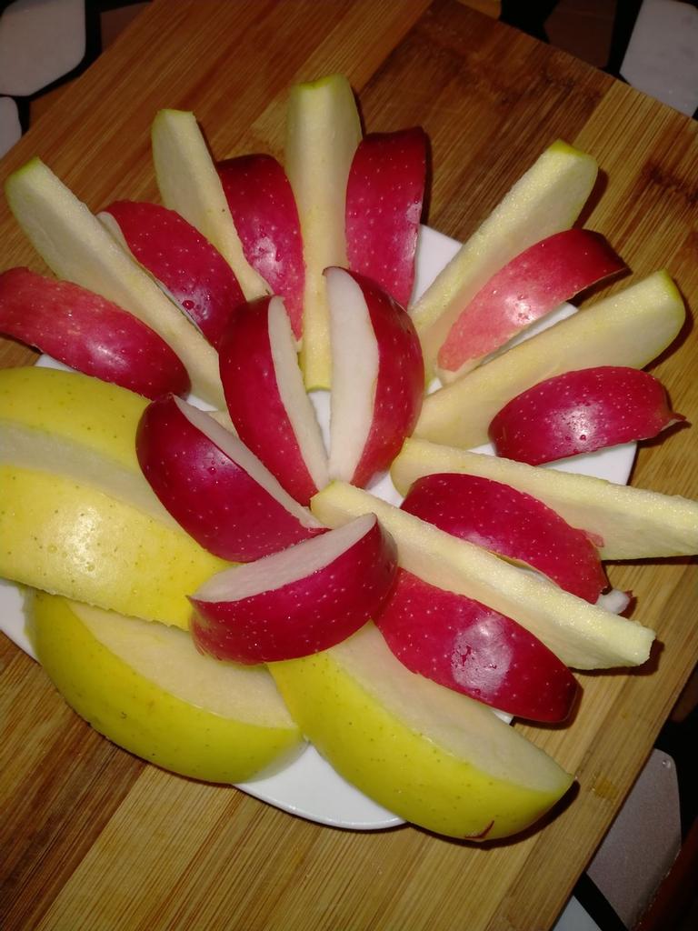 Capacious (for big apples), high quality (even pointed at the bottom), comfortable (handles for holding) In the photo cut cucumber :)