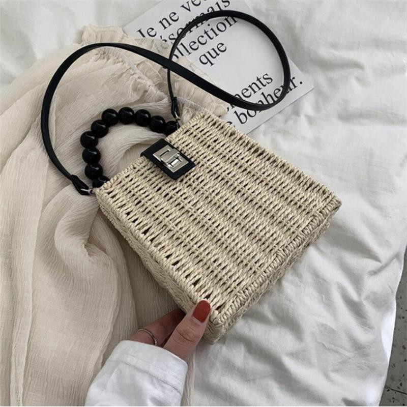 Small Box Beads Handle Straw Bag Portable Messenger Handmade Handbag Straw Bags Beach