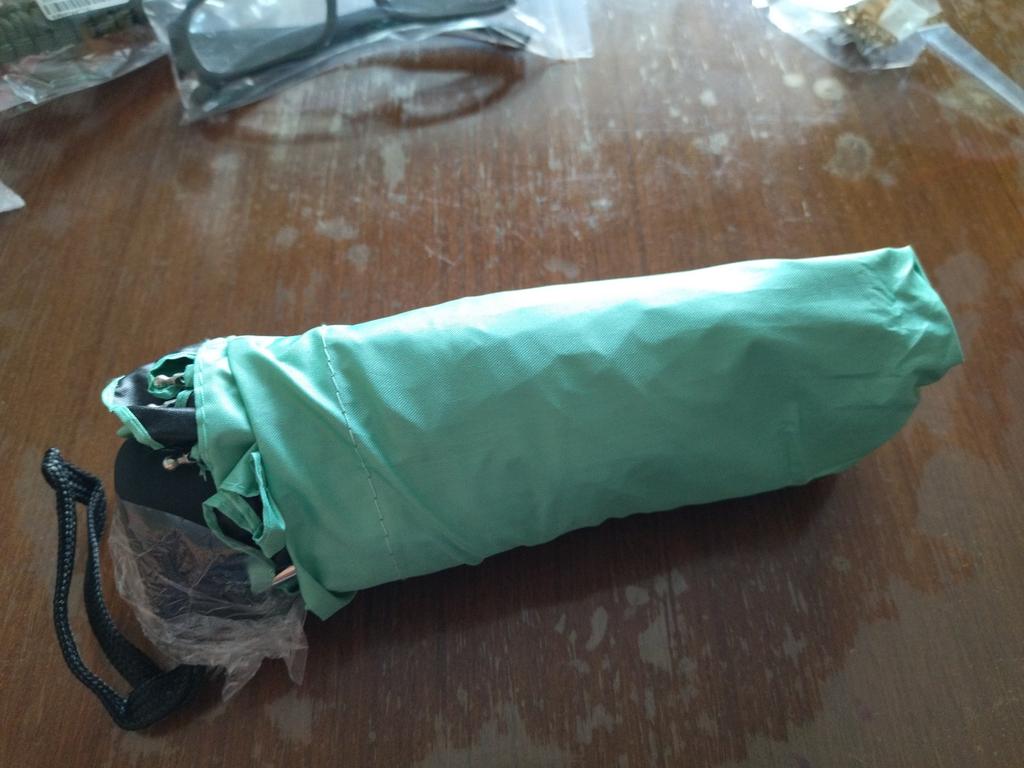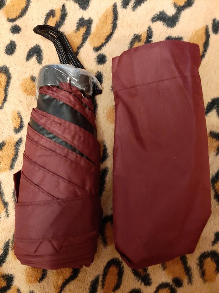 A good little umbrella, but it takes some effort to open the canopy and put it on the holder. Or I got one. And so for a woman's small handbag, that's it.