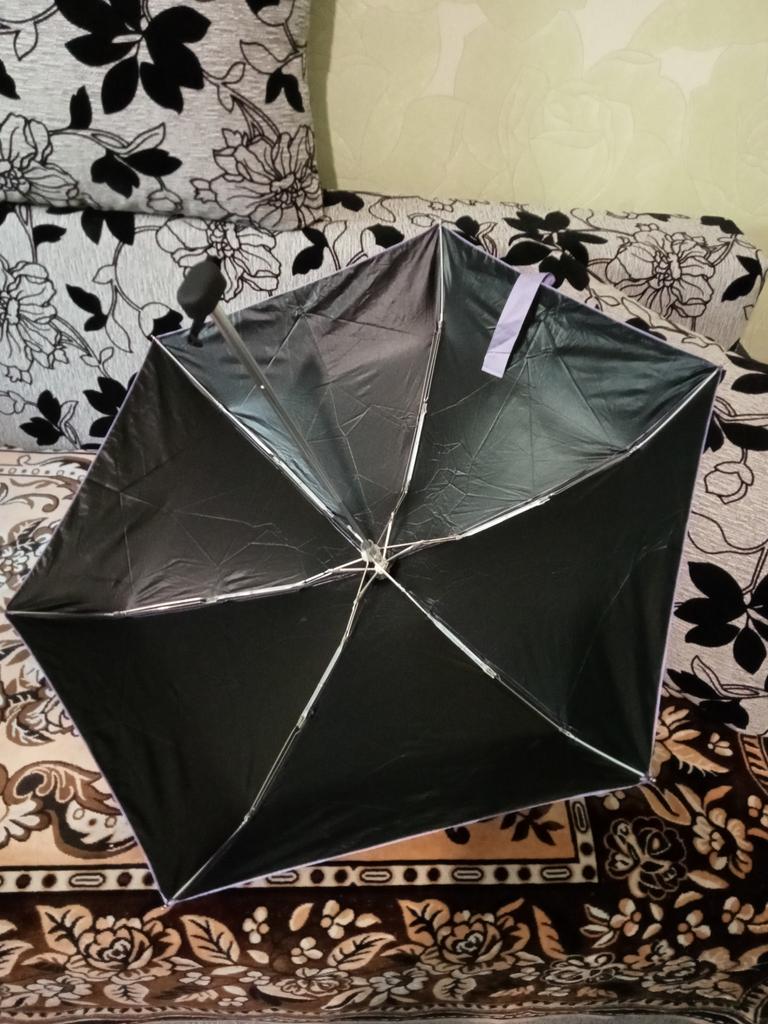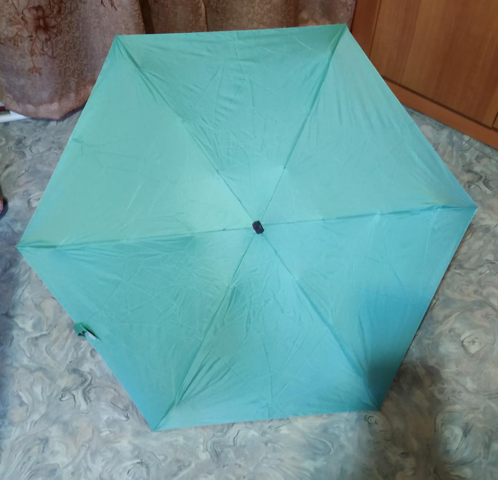 Umbrella as desired-compact-only 17 cm when folded. Flat. In a case. Careful. In 2 additions, 6 spokes, mechanics. When opening under the dome-90cm. Haven't tried it in the case yet.