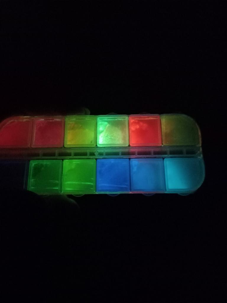 Of the 12 powders that come almost empty, only 1 can be noticed very little in the dark.. I don't recommend it, it's not worth it.