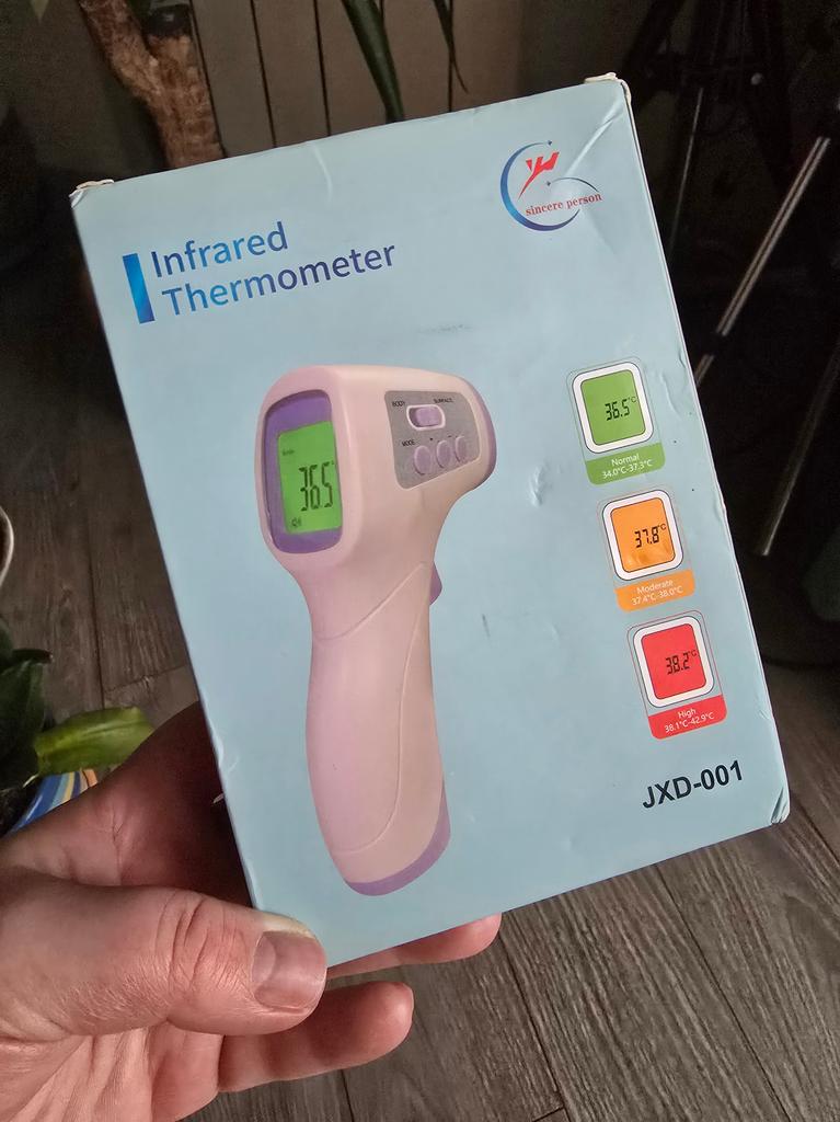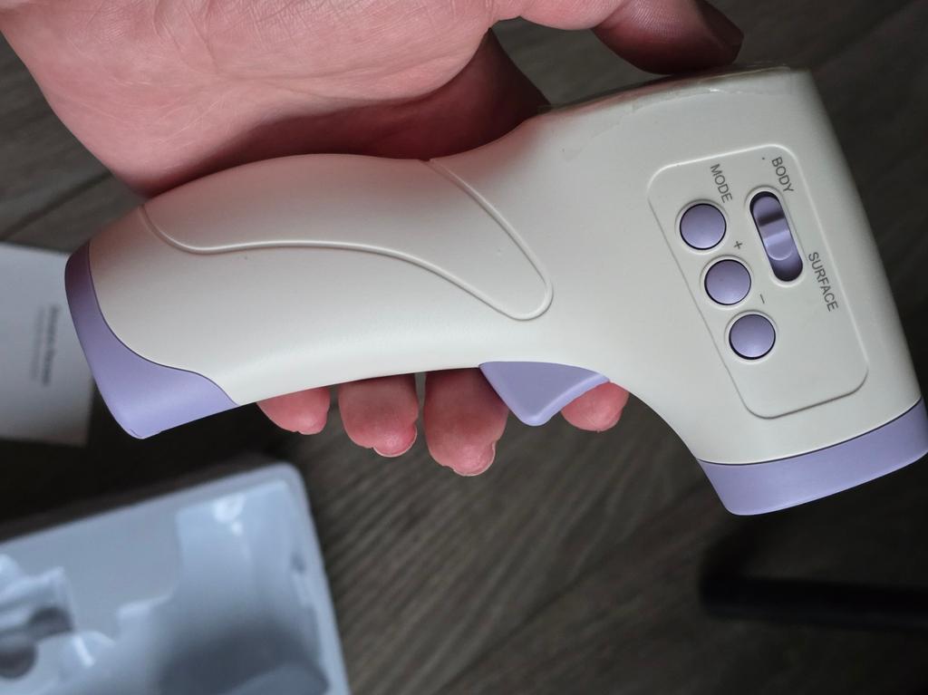 Precise non-contact infrared digital thermometer, lightweight and portable for use.