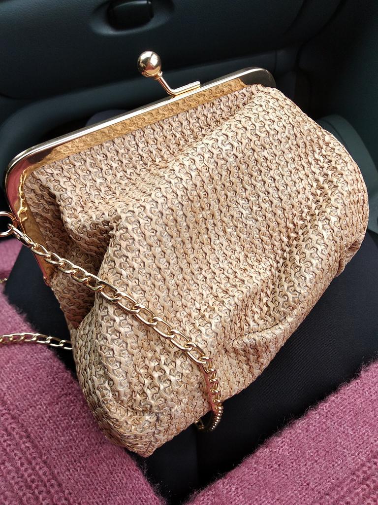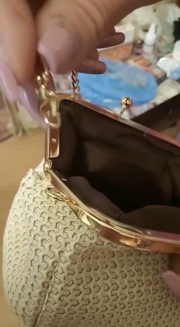 Mouth Gold Small Bag Female Wild Messenger Bag Chain Shoulder Fashion Clip Mouth Straw Bag