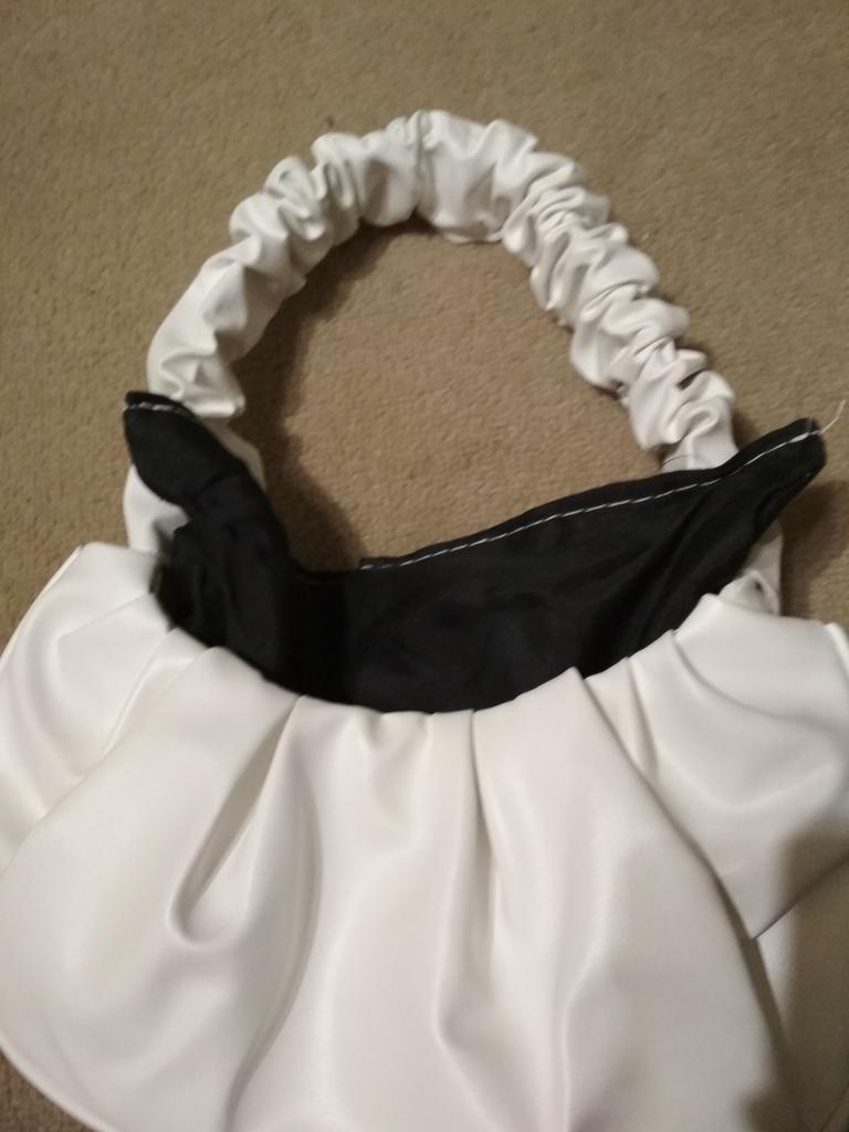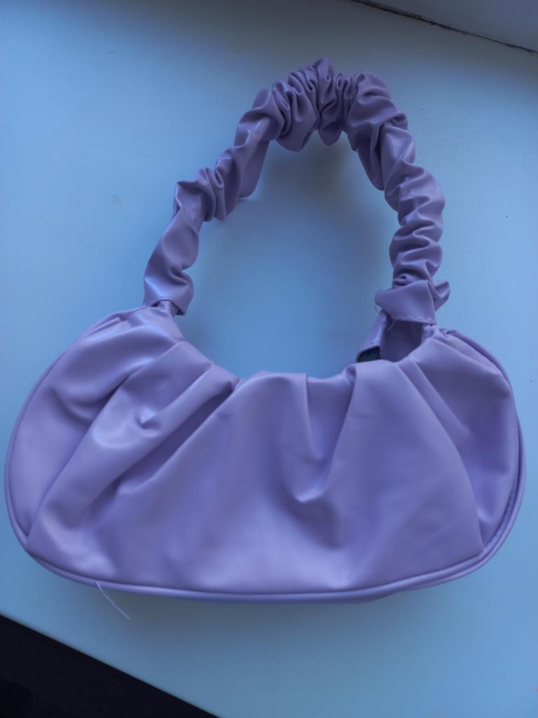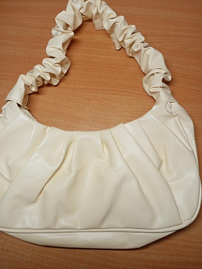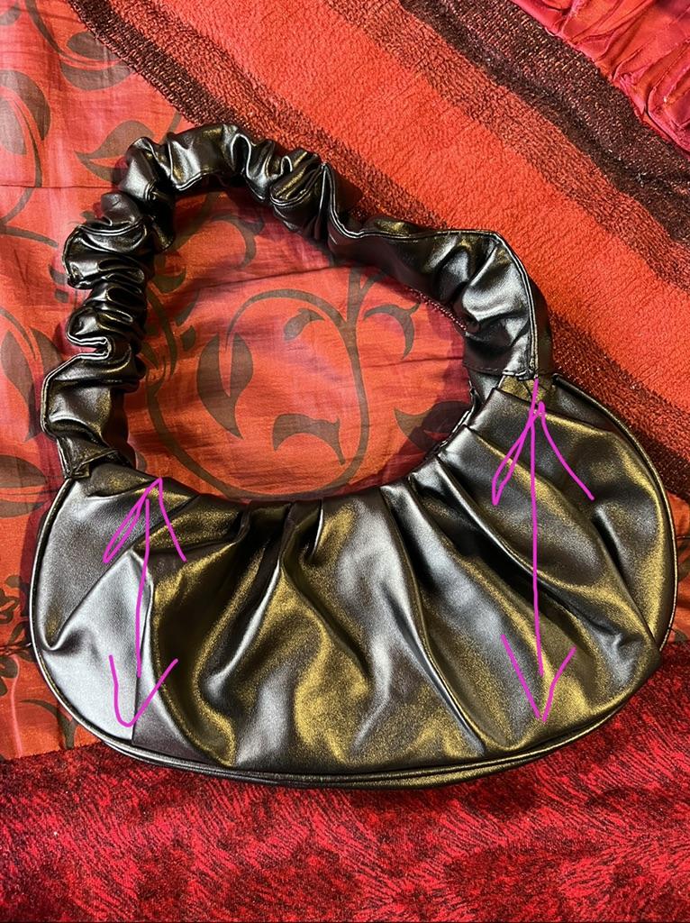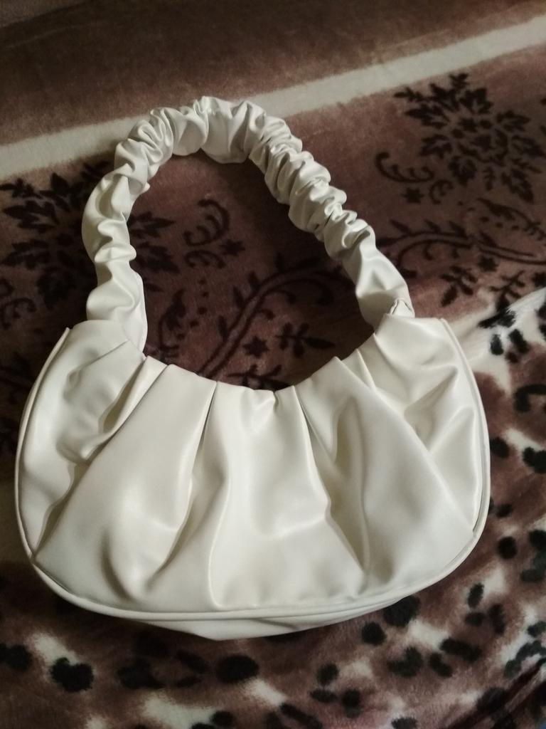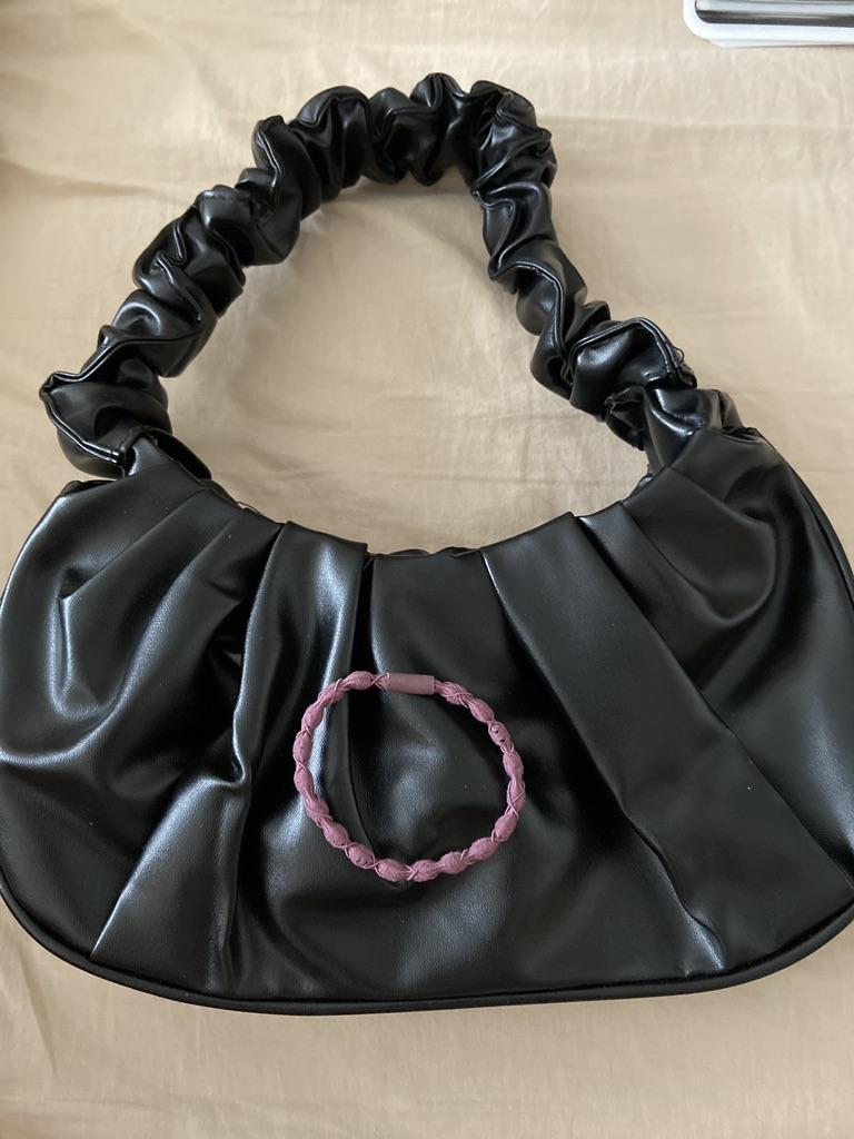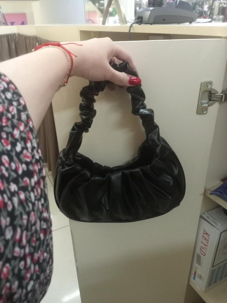 This handbag is really too cute 😍 it's small but there are the essentials: small wallet, cell phone and house keys. I like the curled handle a lot.