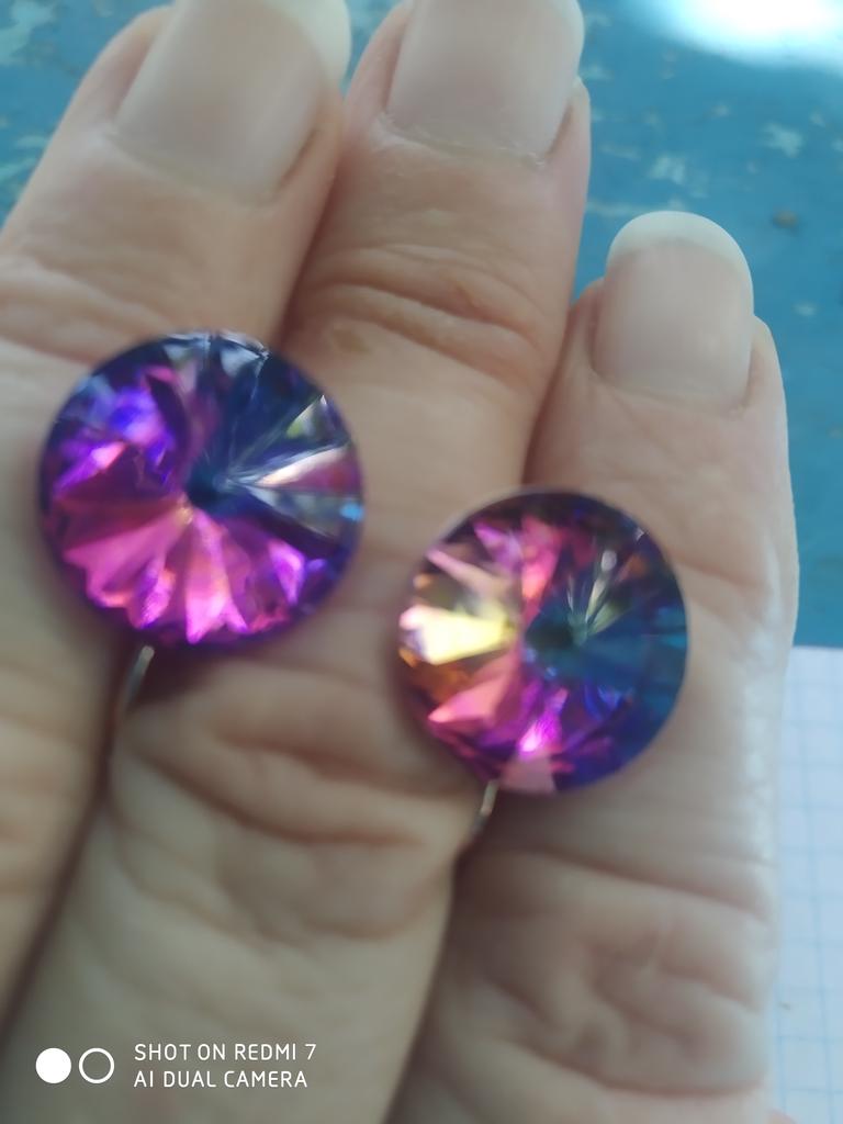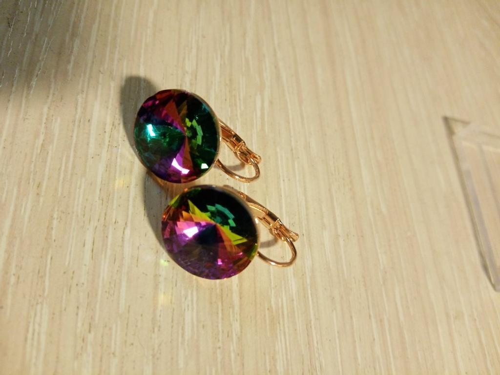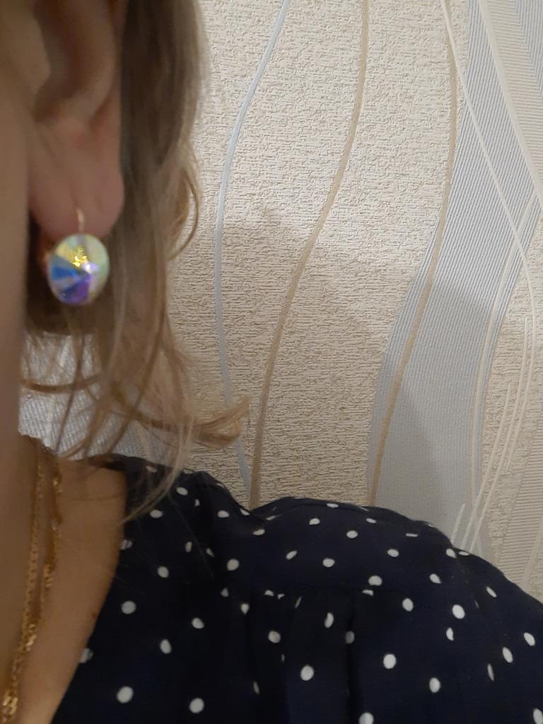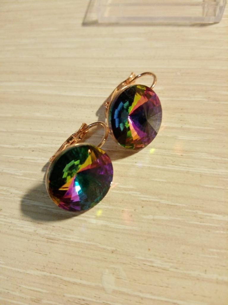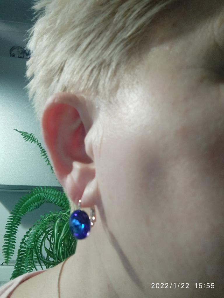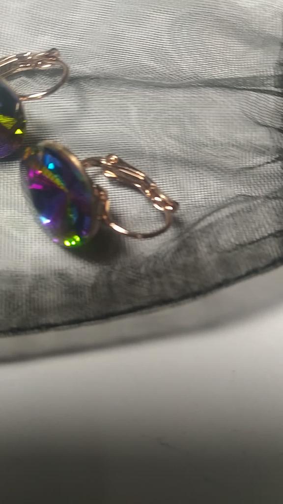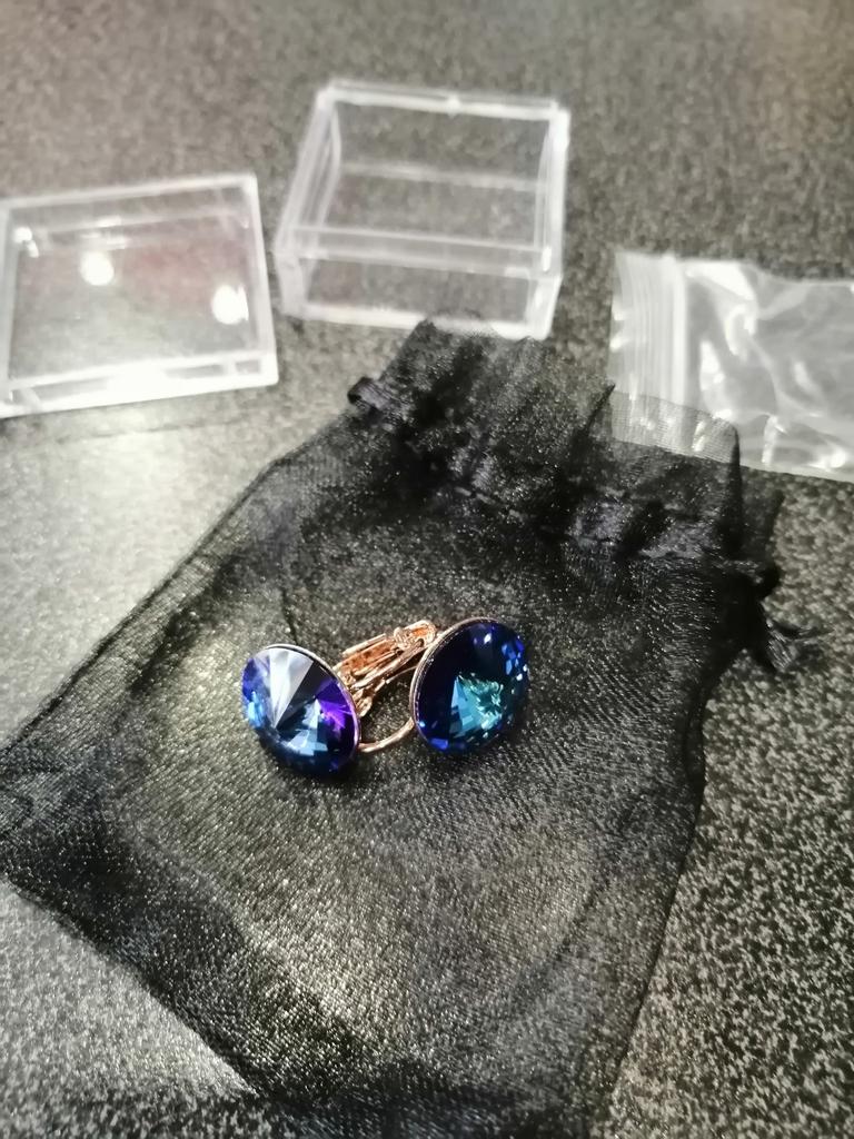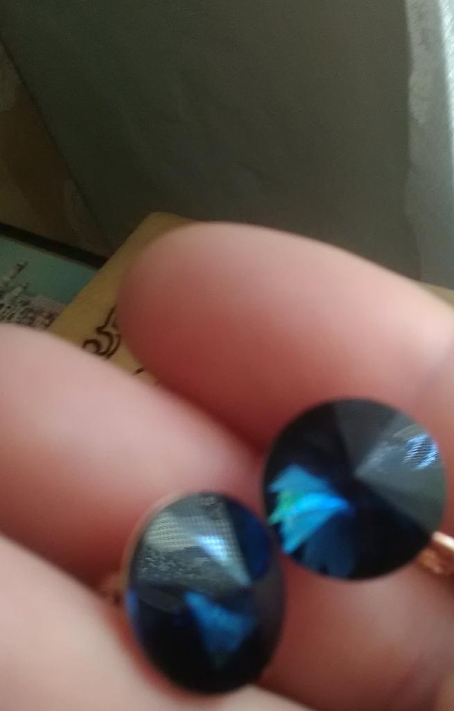 I'm just delighted. Neither photos nor videos convey this beauty. The earrings themselves are cornflower blue, and in different lighting slightly change color. In daylight (sunlight) the middle casts turquoise, and in artificial turquoise edges. It's just incredible beauty. I won them for 1 hryvnia. Very satisfied - I RECOMMEND.