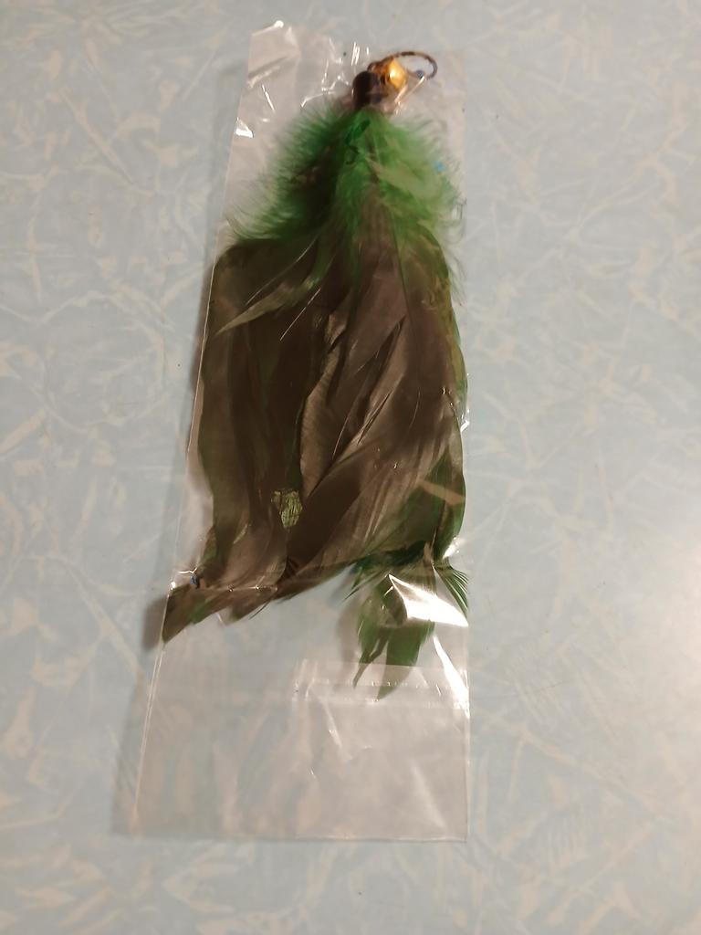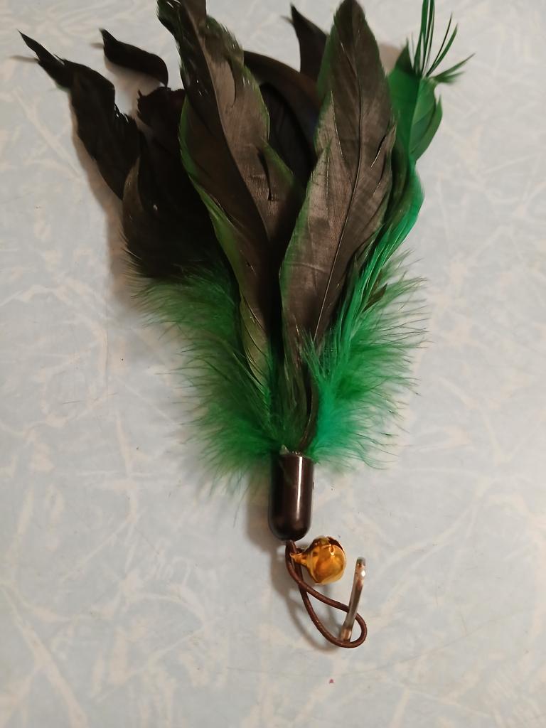The feathers are very beautiful. Good quality. It has a rubber band, so you can attach it to an old stick or just play with it. The kitty is delighted. I will order another one in another color.