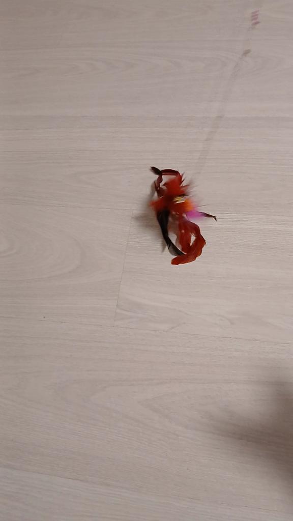 I'm taking it for the second time. She put the previous one on a stick. I'm throwing this one away. My kitty is very happy with her. He even wears it around the apartment in his teeth. I wish there were some more colors so I could distinguish which feathers she lost in the apartment
