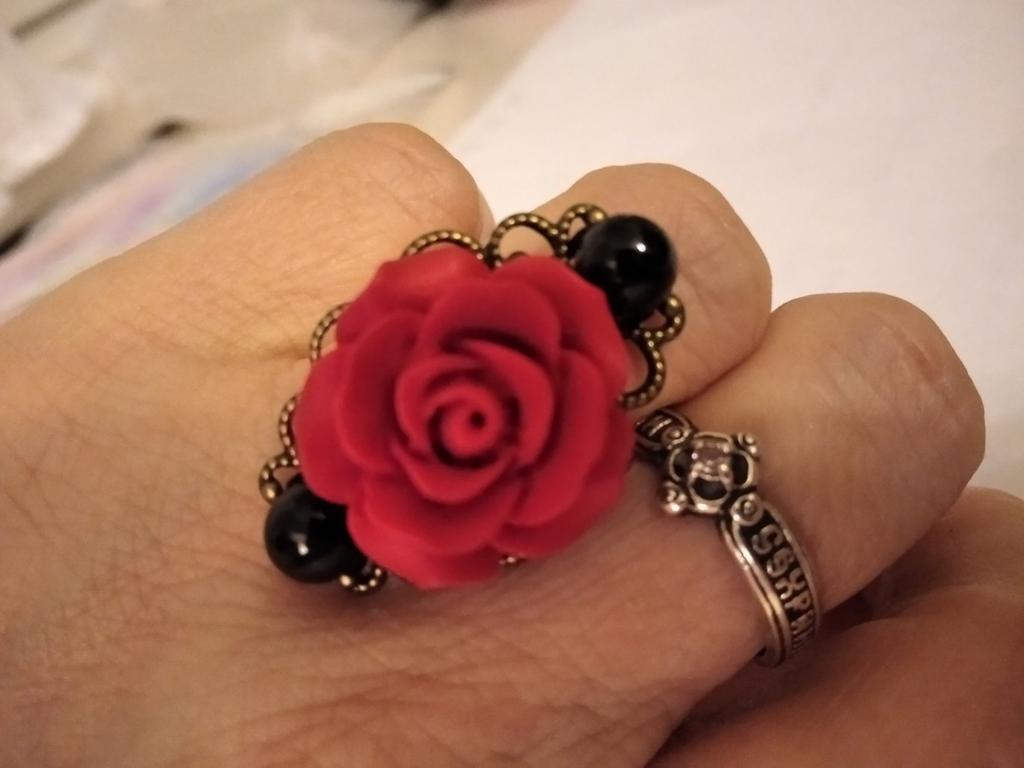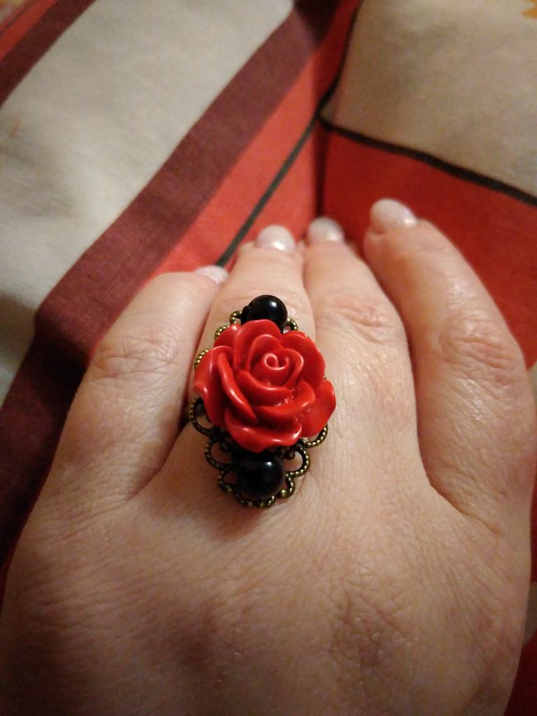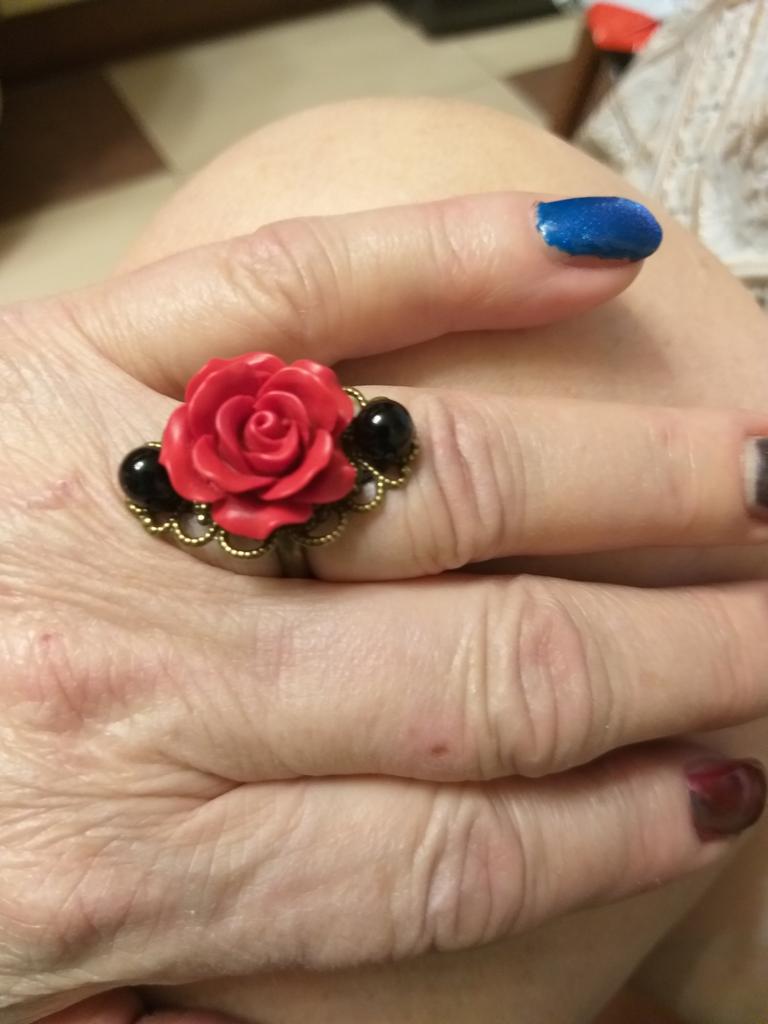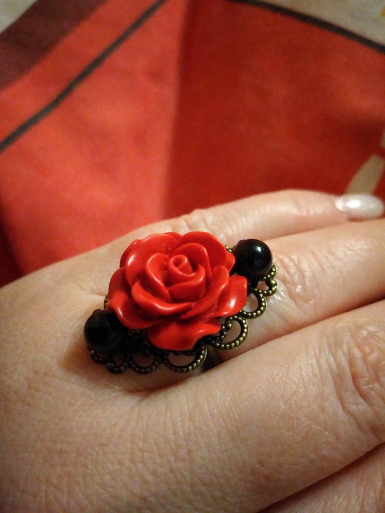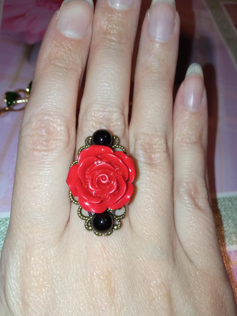 Ring in Gothic style. Red rose in black and gold frame. Looks impressive, the size is adjustable. I recommend it.♥️✨💯✨🌹, 🌹 🌹 😍