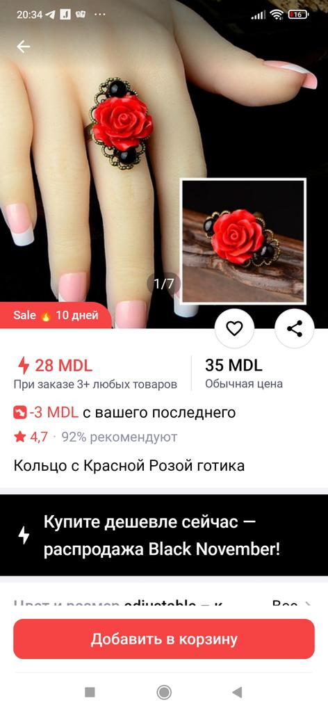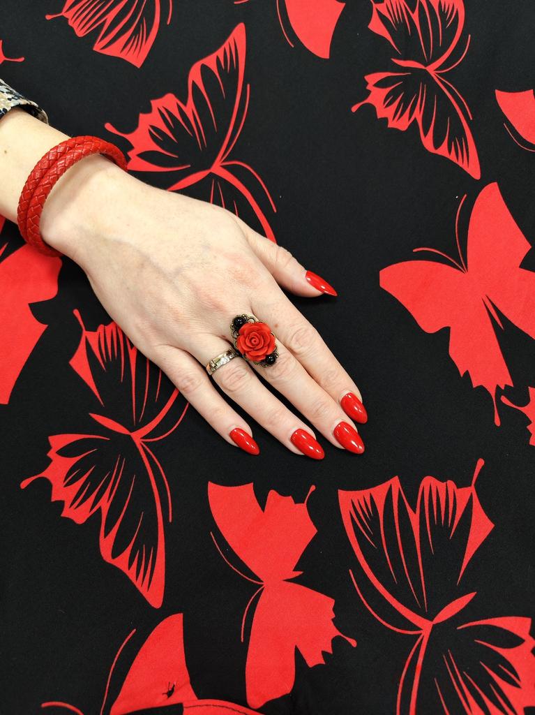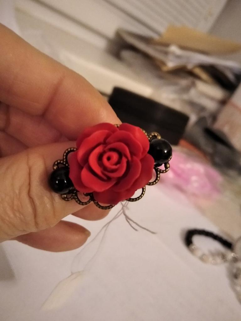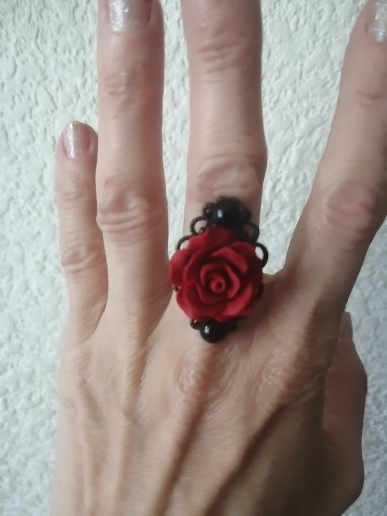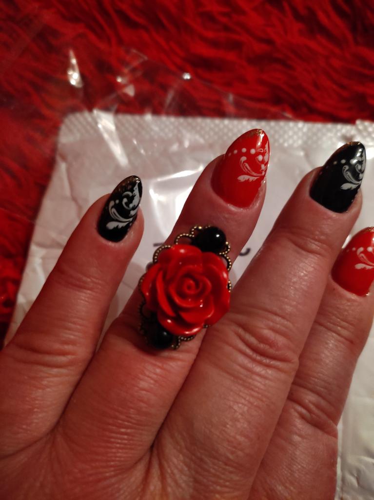 Ring in Gothic style. Red rose in black and gold frame. Looks impressive, the size is adjustable. I recommend it.♥️✨💯✨🌹, 🌹 🌹 😍