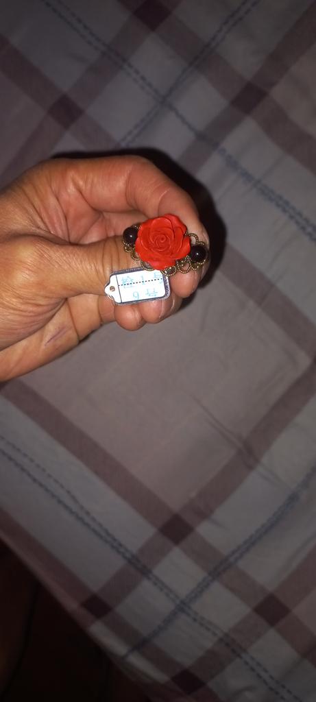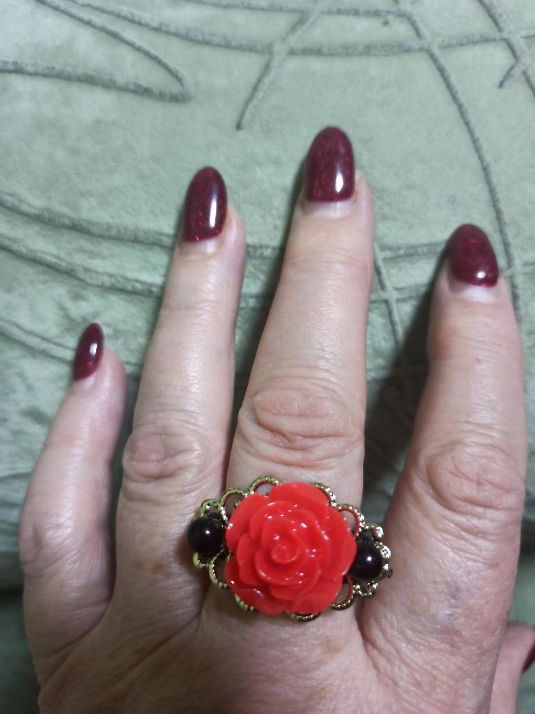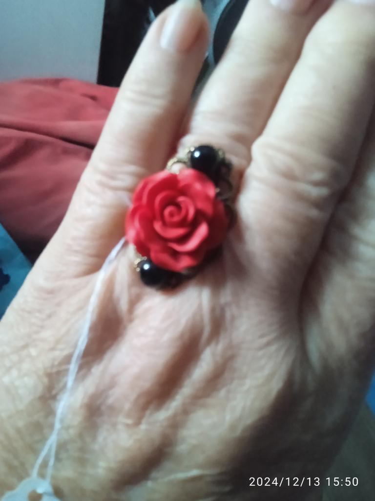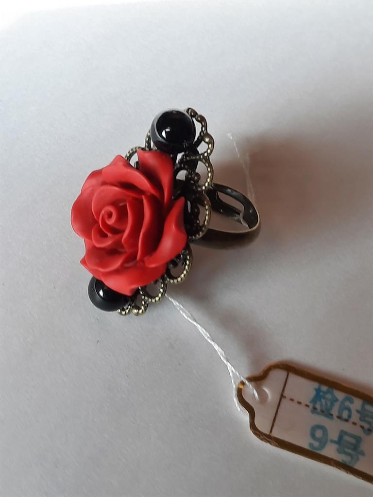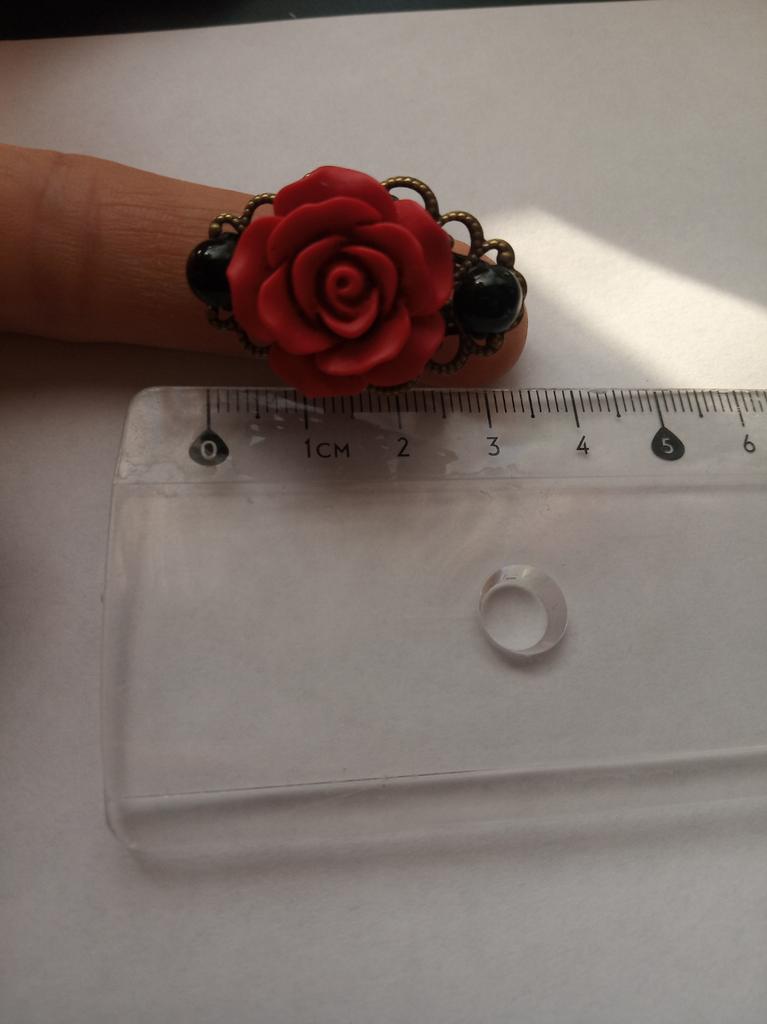 The ring is beautiful, the rose is bright red, 2 cm in diameter. For any size
