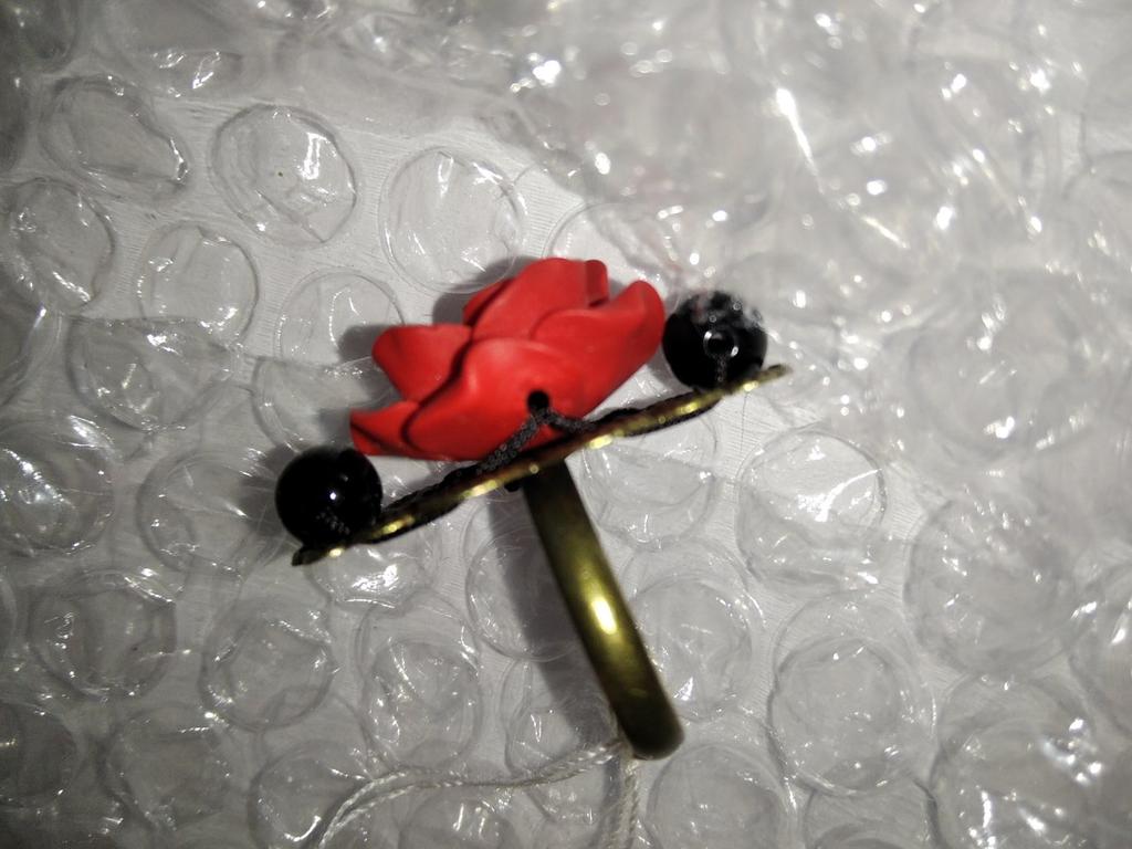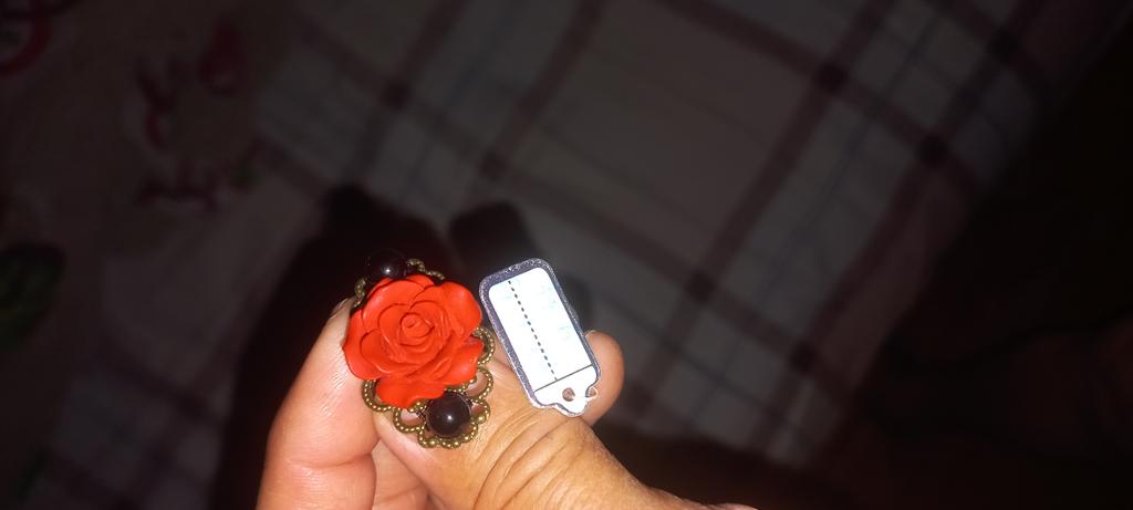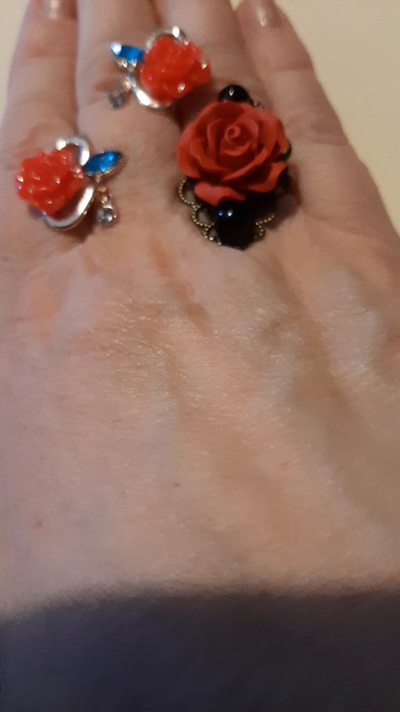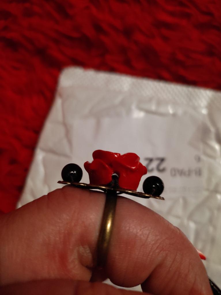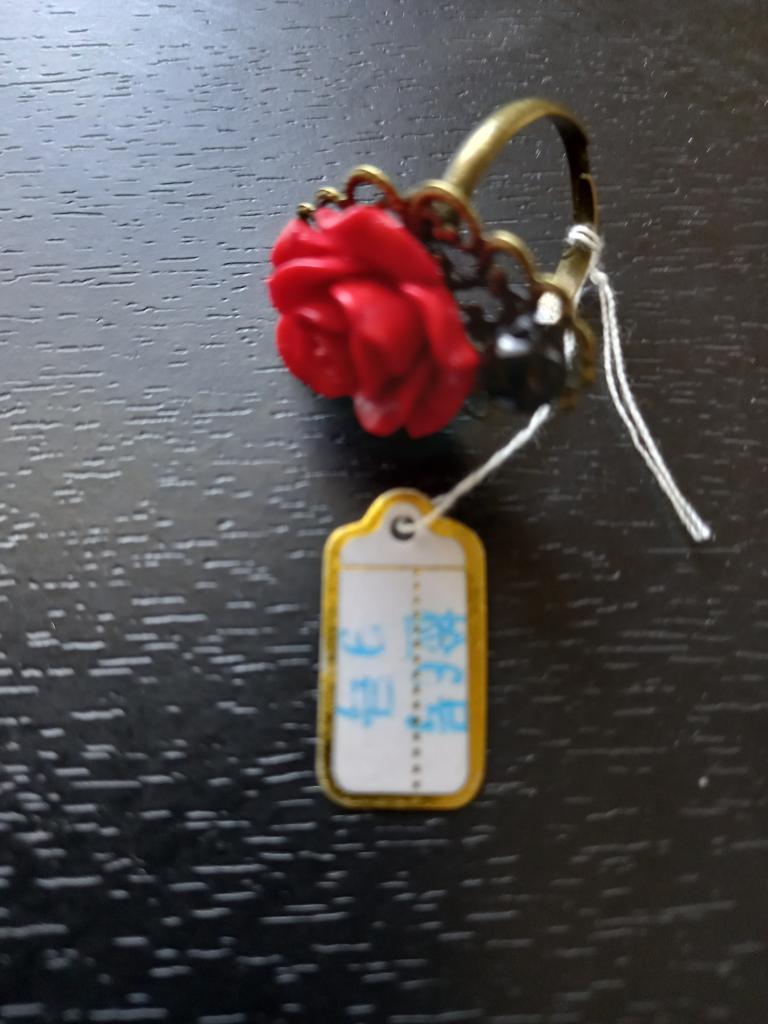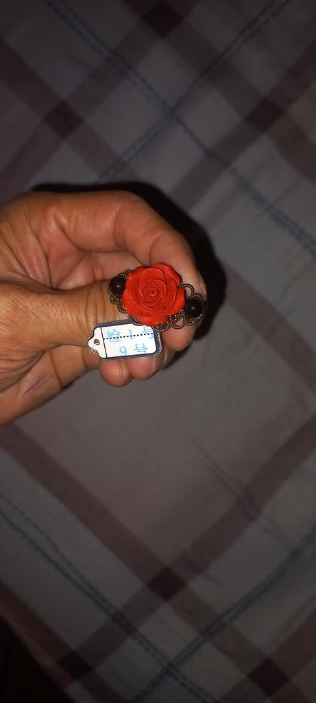 The ring is beautiful, the rose is bright red, 2 cm in diameter. For any size