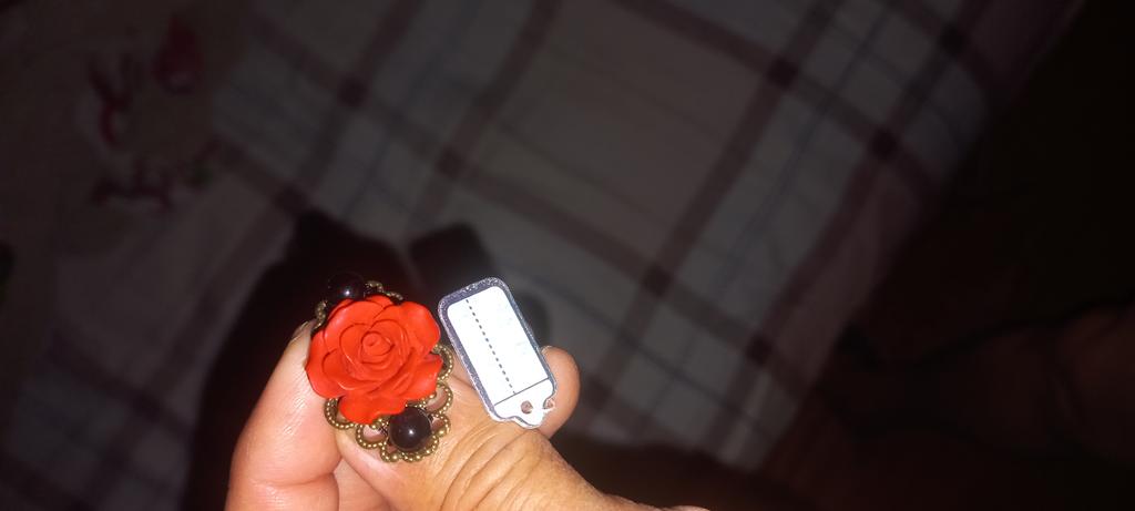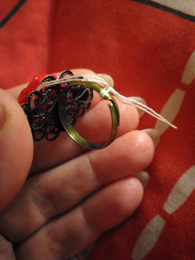The ring is very beautiful, not small, the rosette is plastic, the backing is delicate and retro, the ring itself is detachable and thin. THANK YOU ALL for your work!