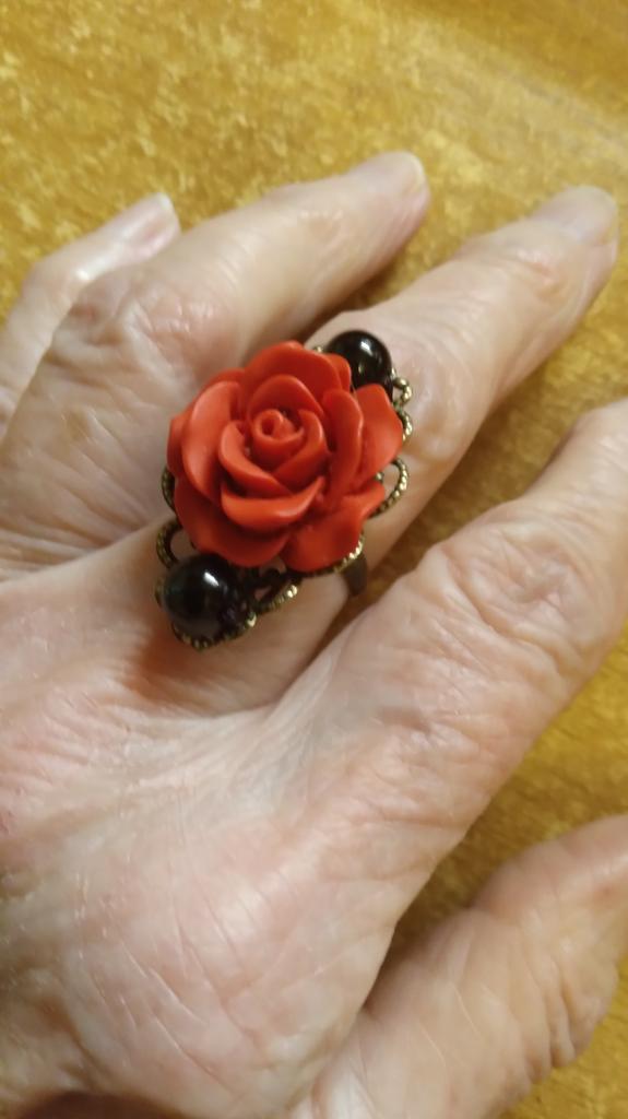 A very beautiful large ring, the rose is reinforced with threads, the size can be changed.