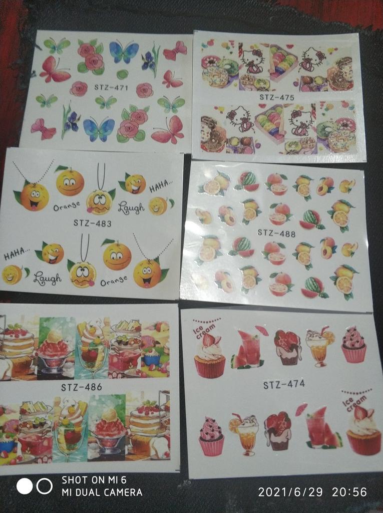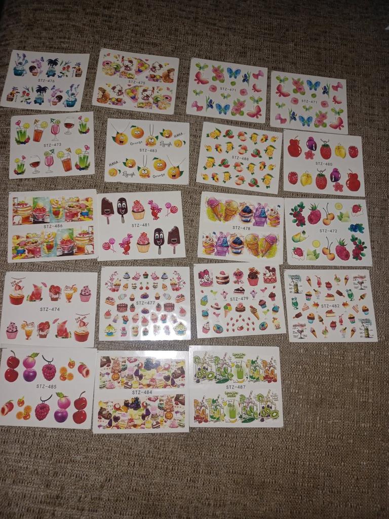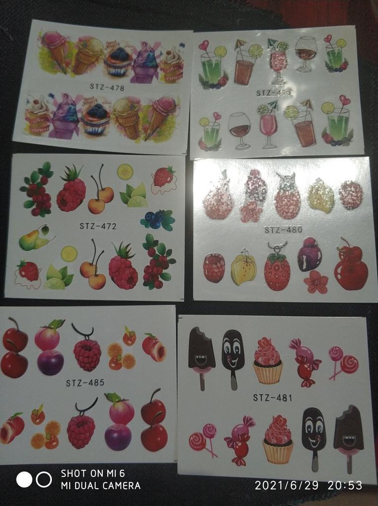 18 Sheets Water Transfer Nail Art Sticker Fruit Ice Ream Cocktail Cherry Strawberry Cake Image Decals Beauty DIY Manicure Tools