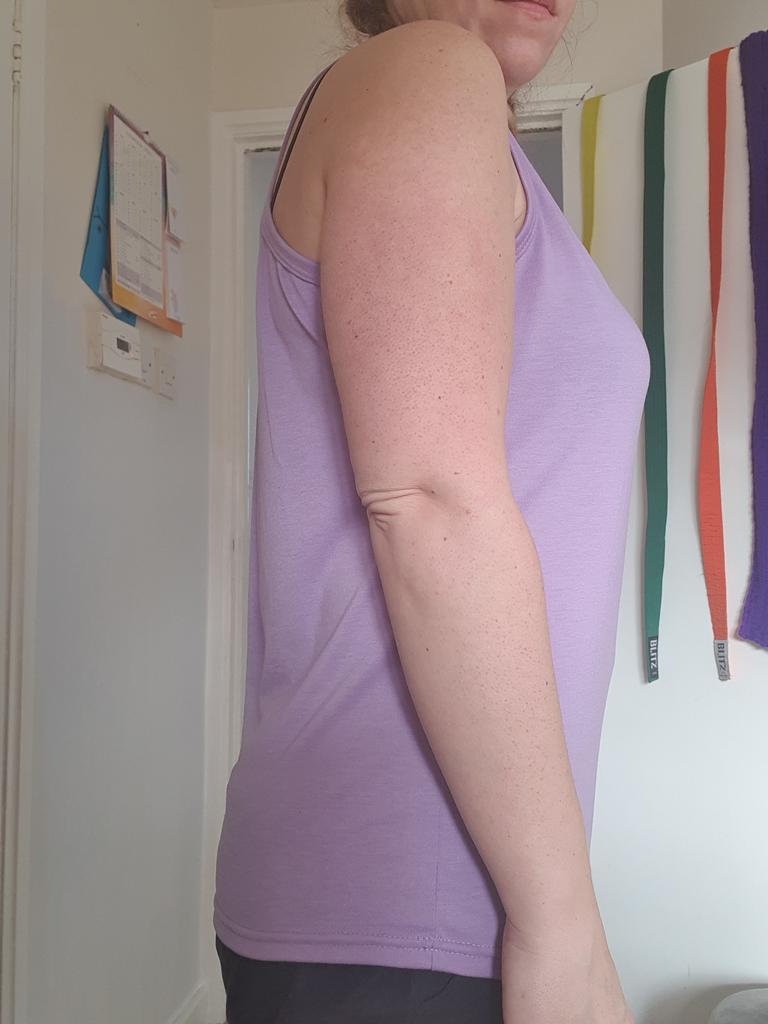 Very narrow neckline, everything sticks to the material, collects literally all the debris, didn't like the feel either. The only good things are the style and how it fits
