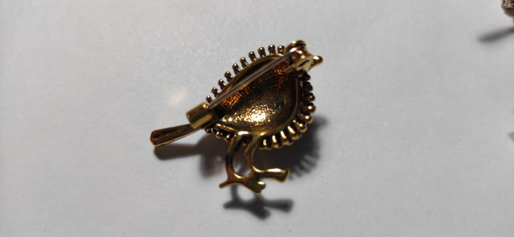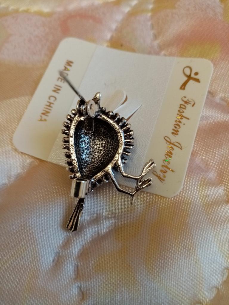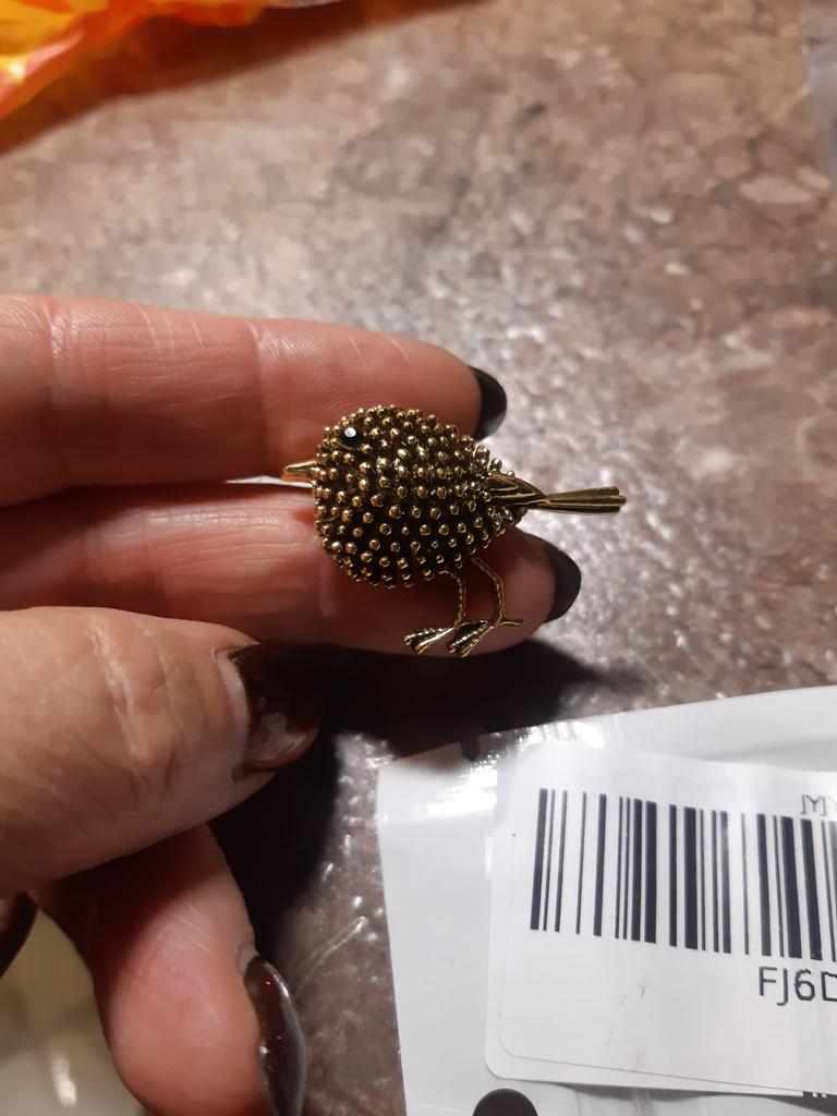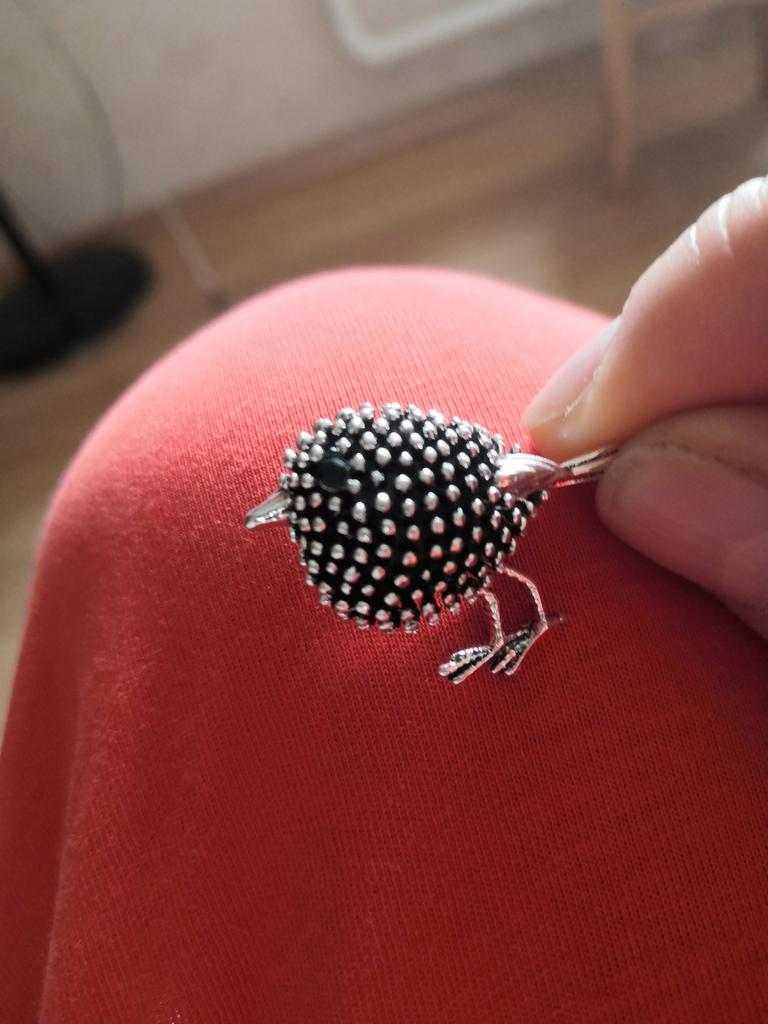 The bird itself is beautiful, very cute, BUT the first time I tried to pin it, the clasp fell out. That is, the quality is terrible.
