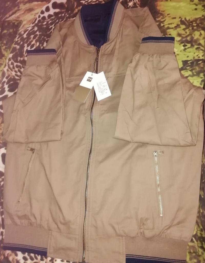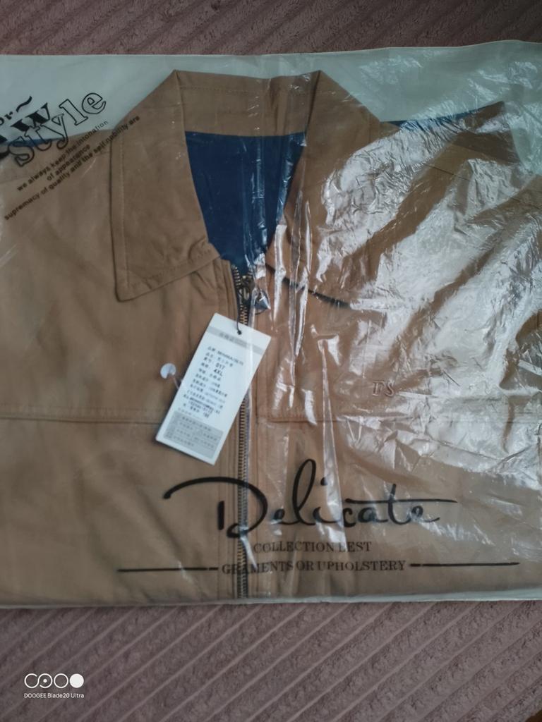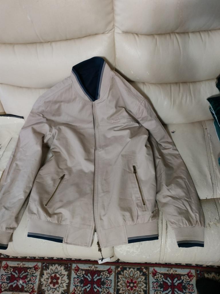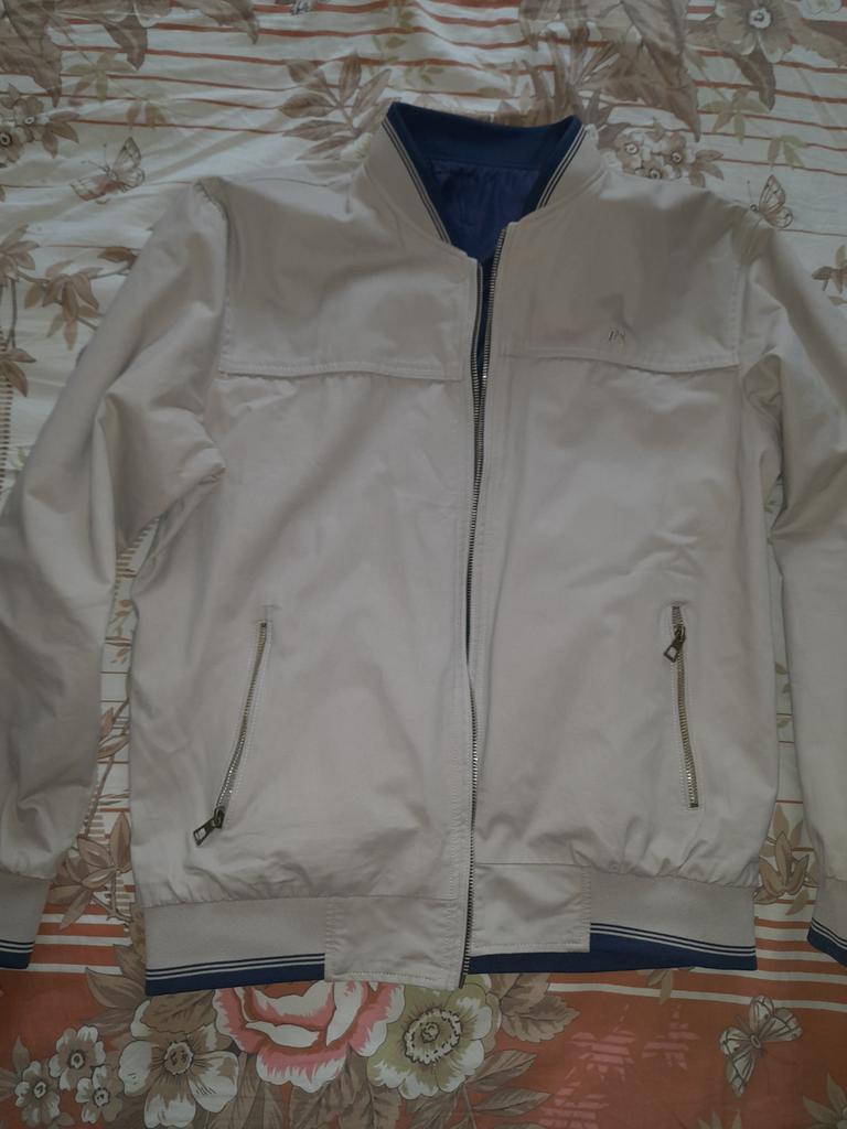 The jacket is excellent, as in the photo, reversible. The light side is cotton fabric, the blue side is cotton wool. Quality jacket size, xxl is 46