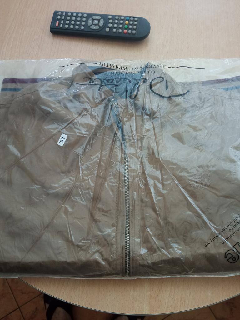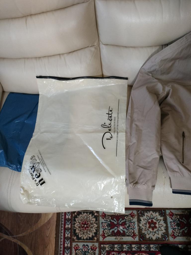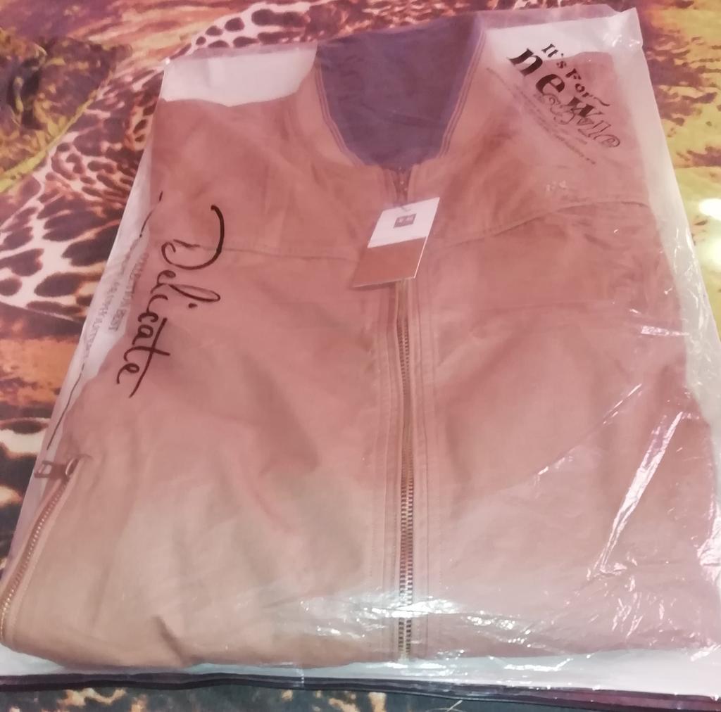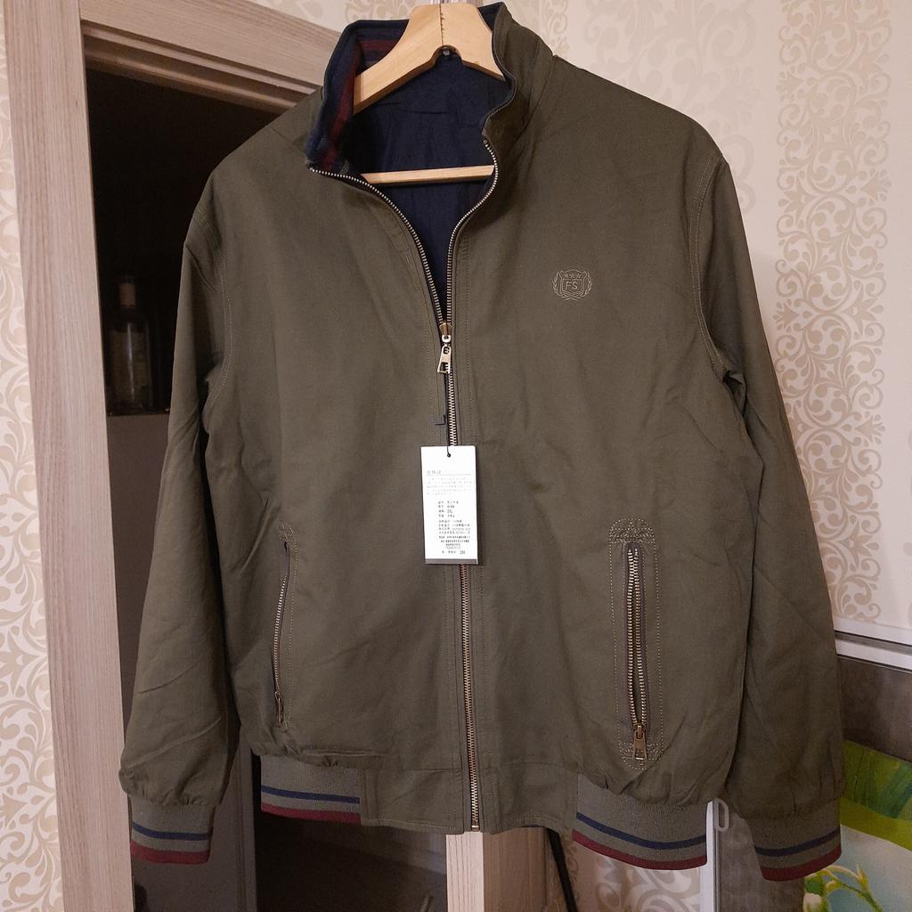 The jacket is excellent, as in the photo, reversible. The light side is cotton fabric, the blue side is cotton wool. Quality jacket size, xxl is 46