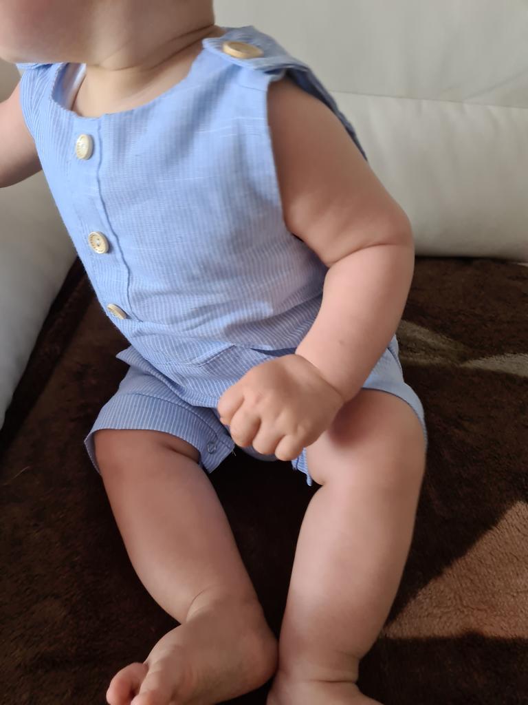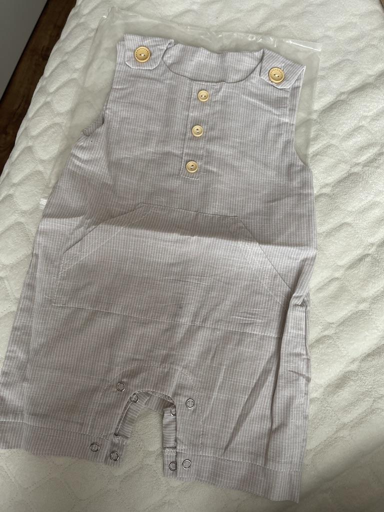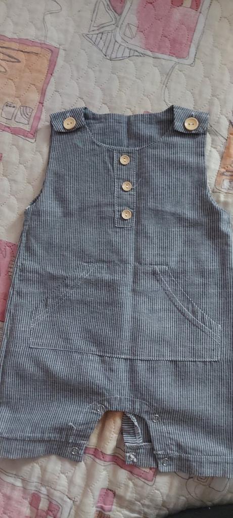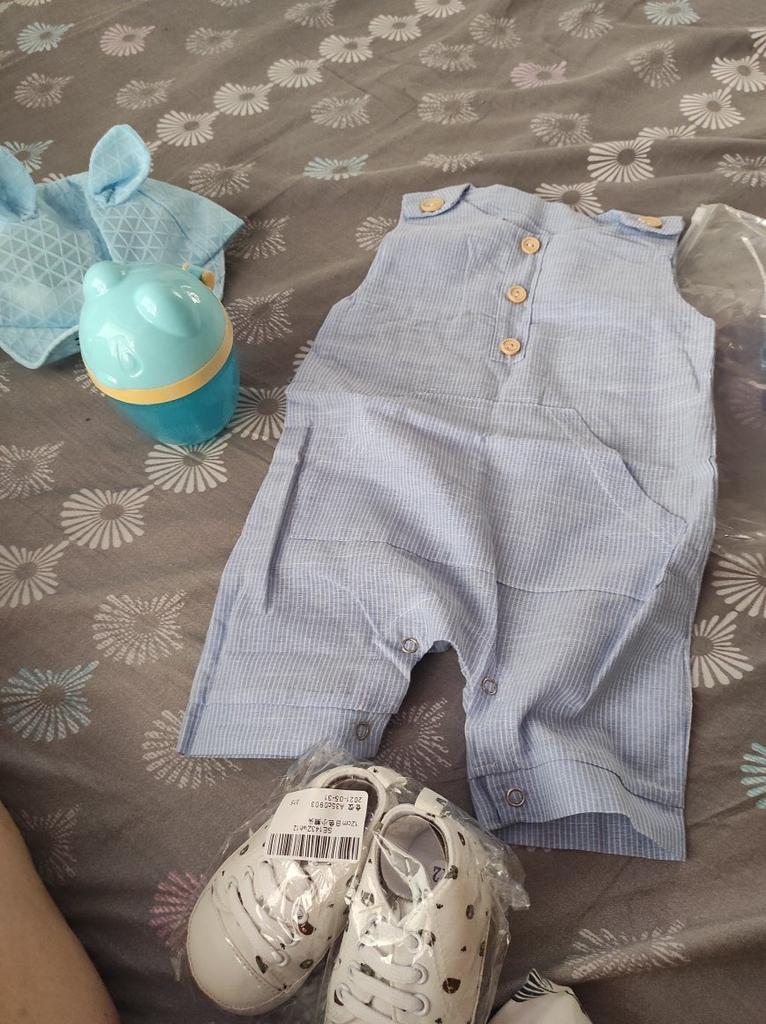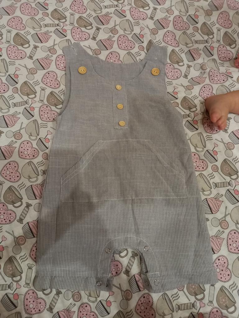 I ordered a 0/3 month and I received a 6 month, needless to say, it's very big! It's a shame because this little jumpsuit is very pretty, the finishes are perfect, it's 95% cotton and 5% polyester, it should be light to wear. Delivery in almost 1 month.