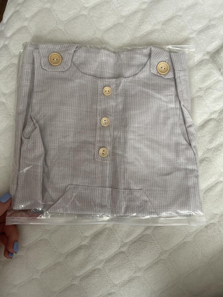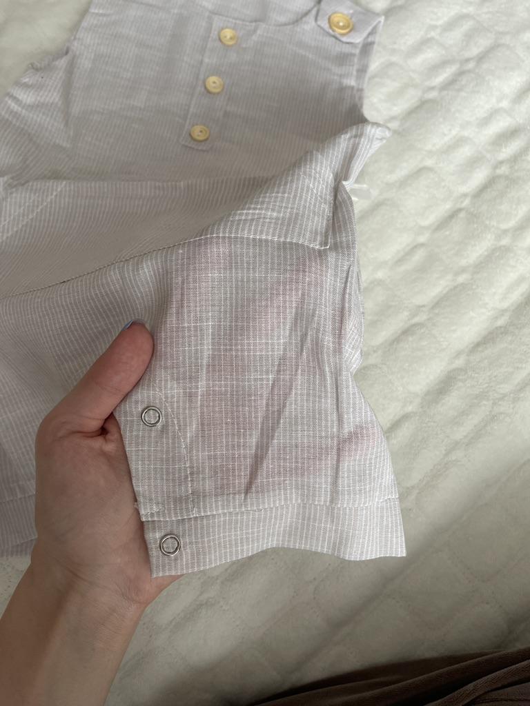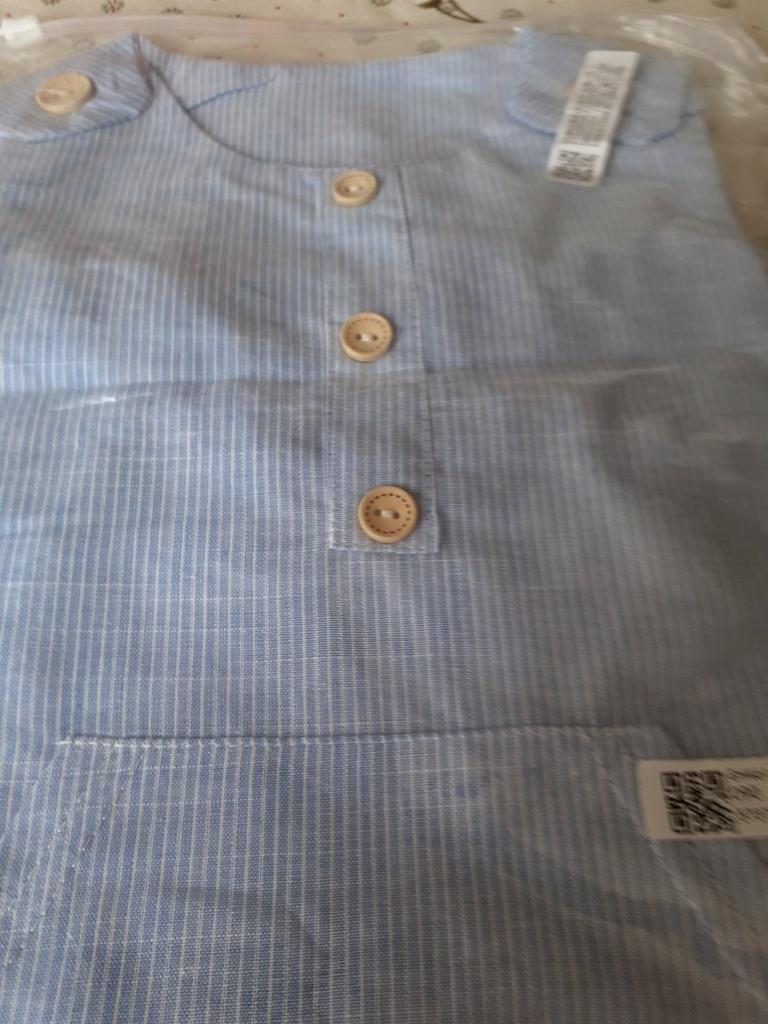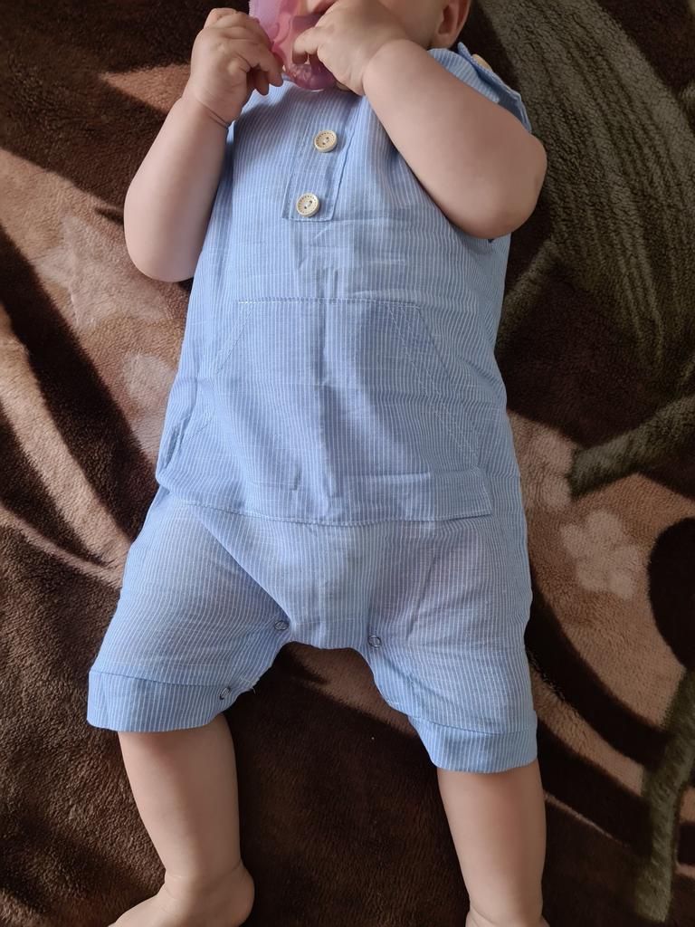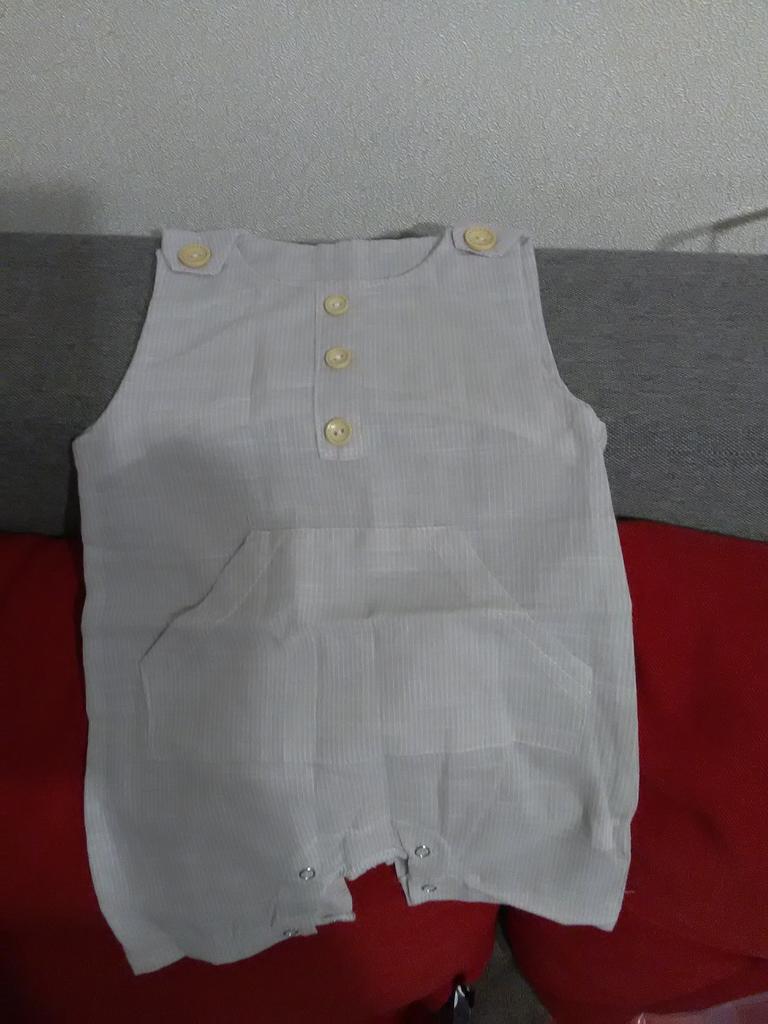 I ordered a 0/3 month and I received a 6 month, needless to say, it's very big! It's a shame because this little jumpsuit is very pretty, the finishes are perfect, it's 95% cotton and 5% polyester, it should be light to wear. Delivery in almost 1 month.