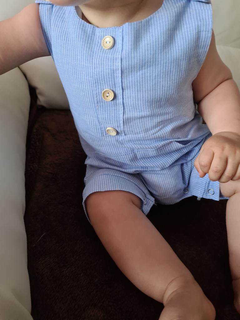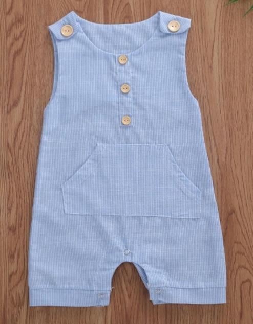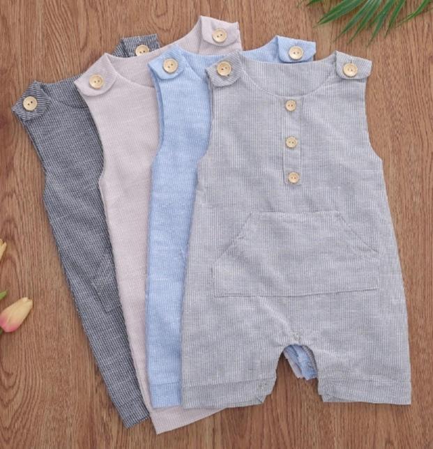 Newborn Baby Boy Romper One-pieces Buttons Striped Jumpsuit Cotton Linen Playsuit Sleeveless Clothes Outfits 0-18M