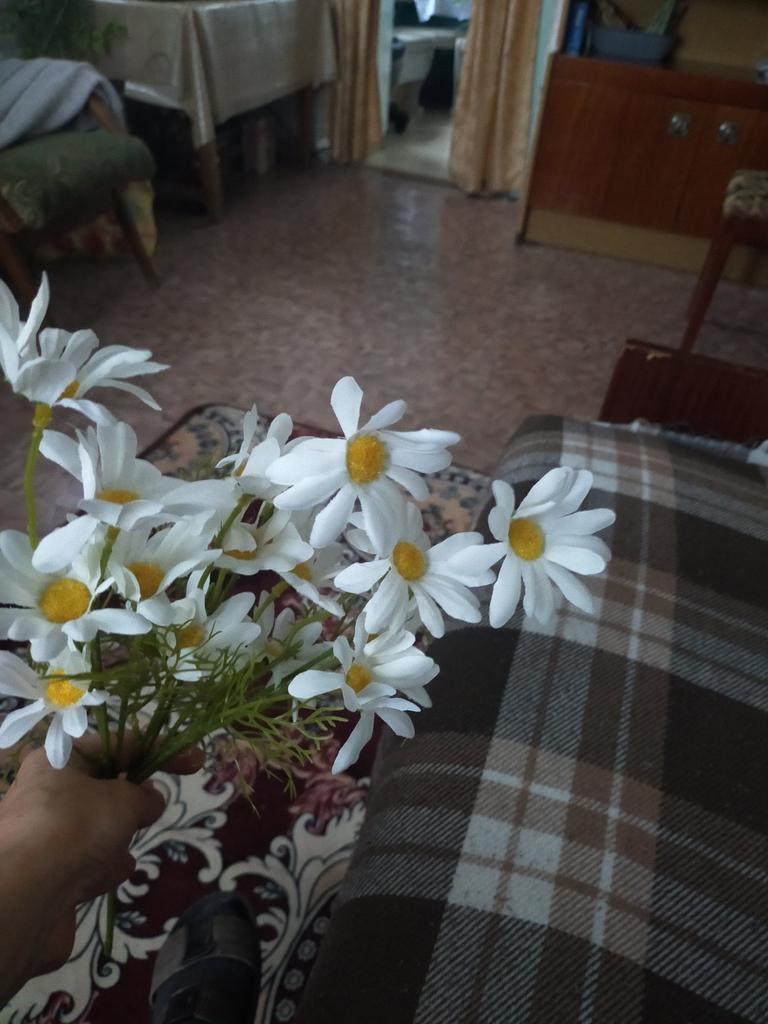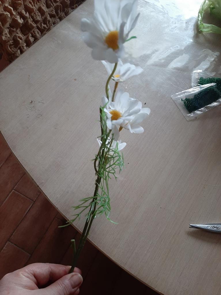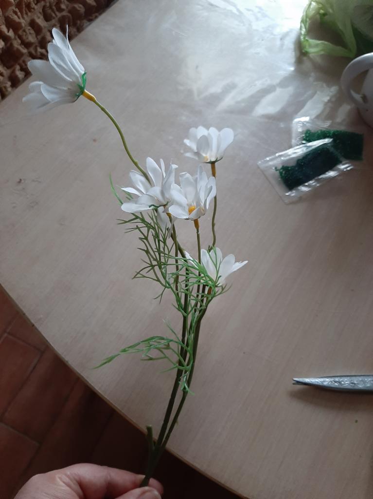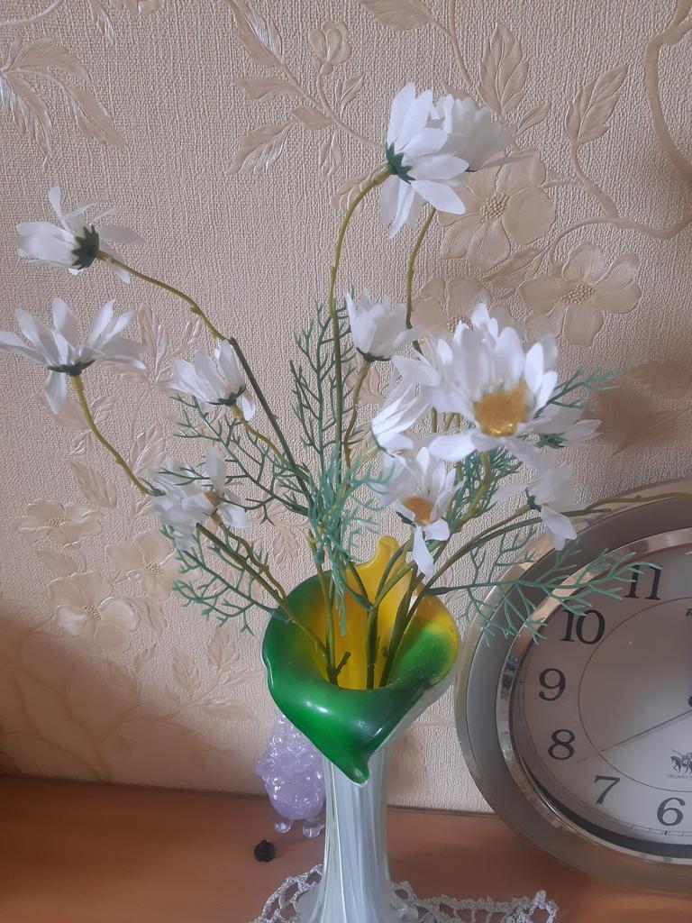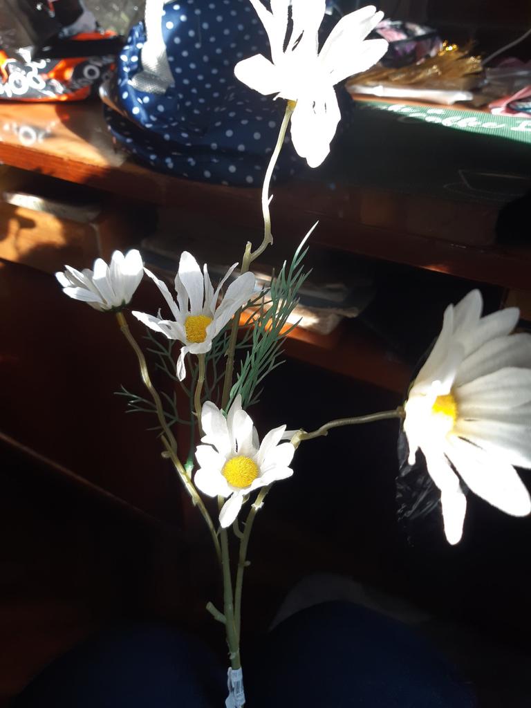 Daisies are wonderful, only one more branch was needed, then it would have looked better. Thanks for the decoration.