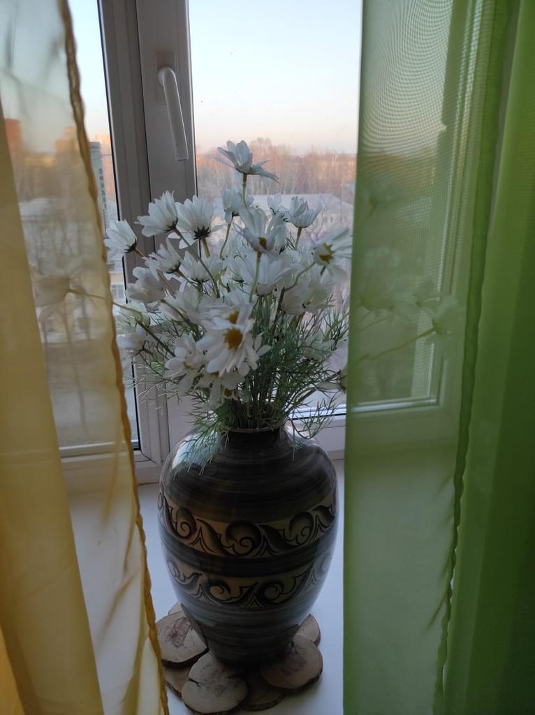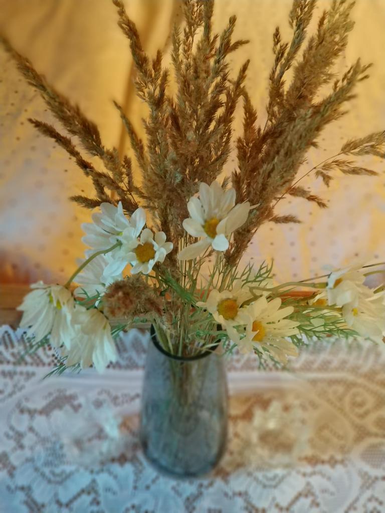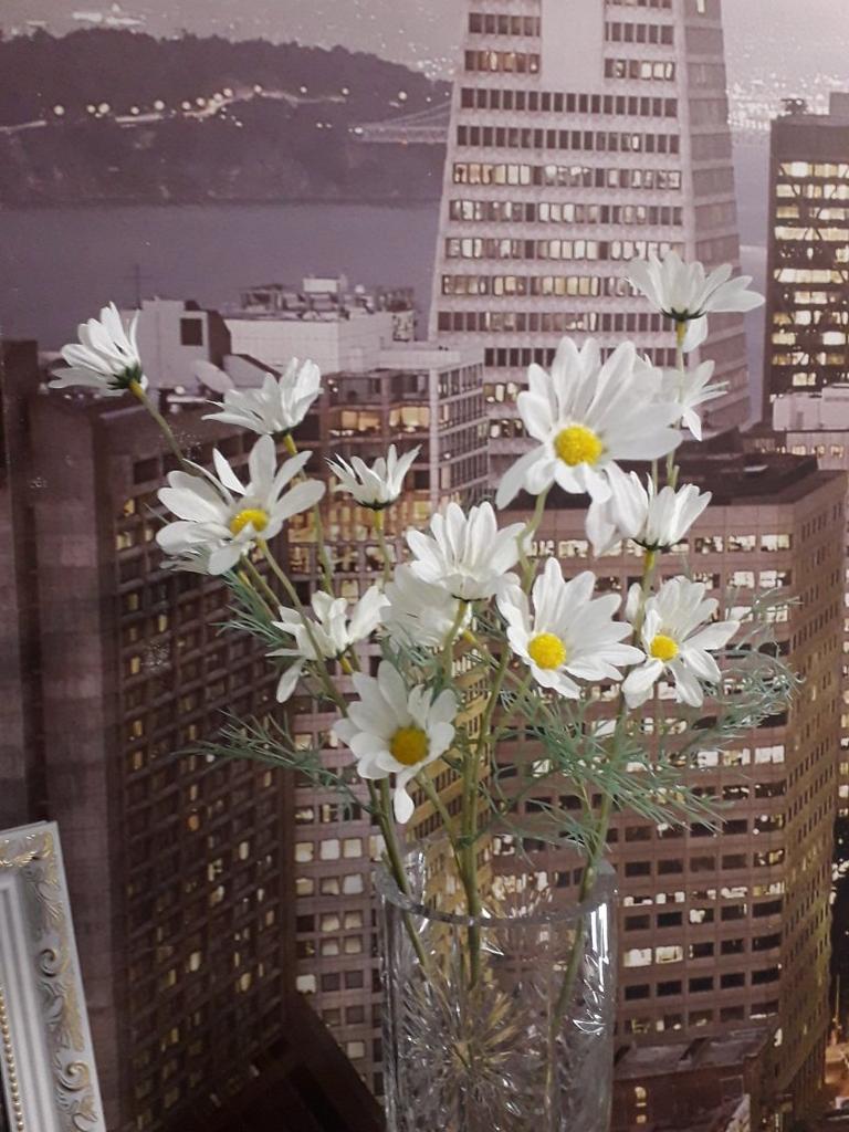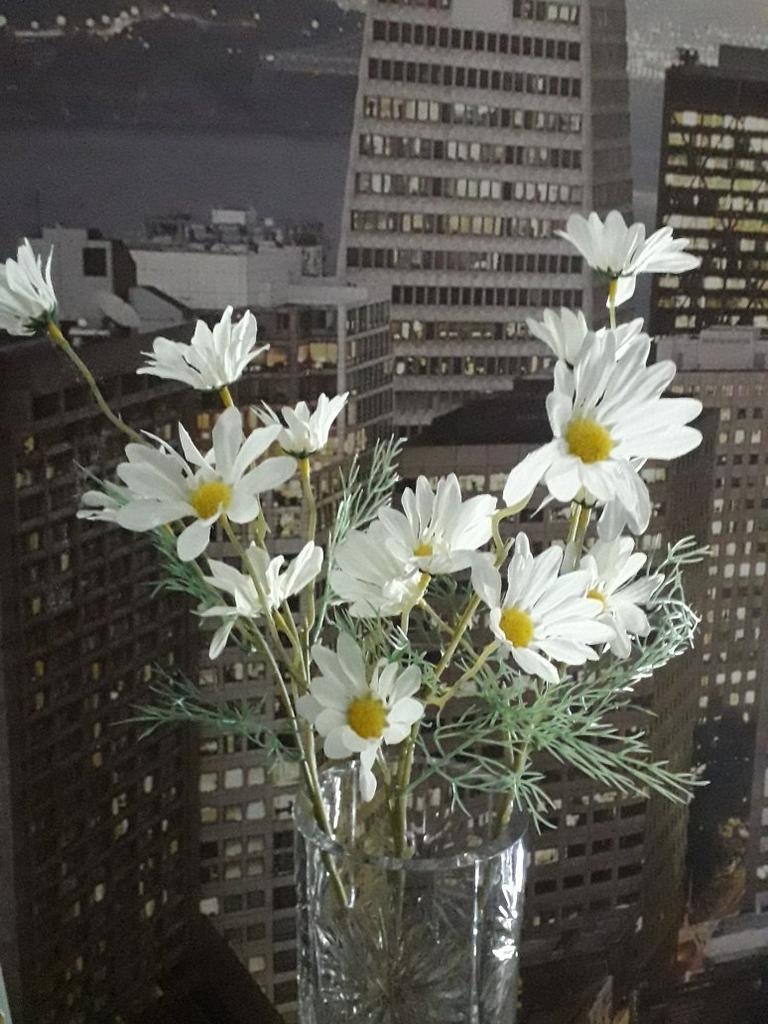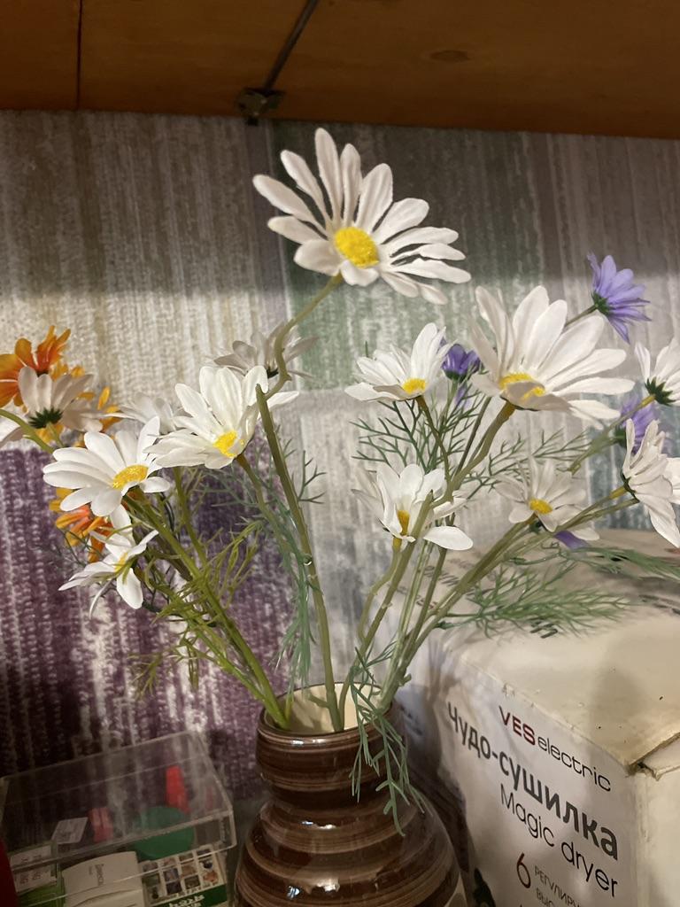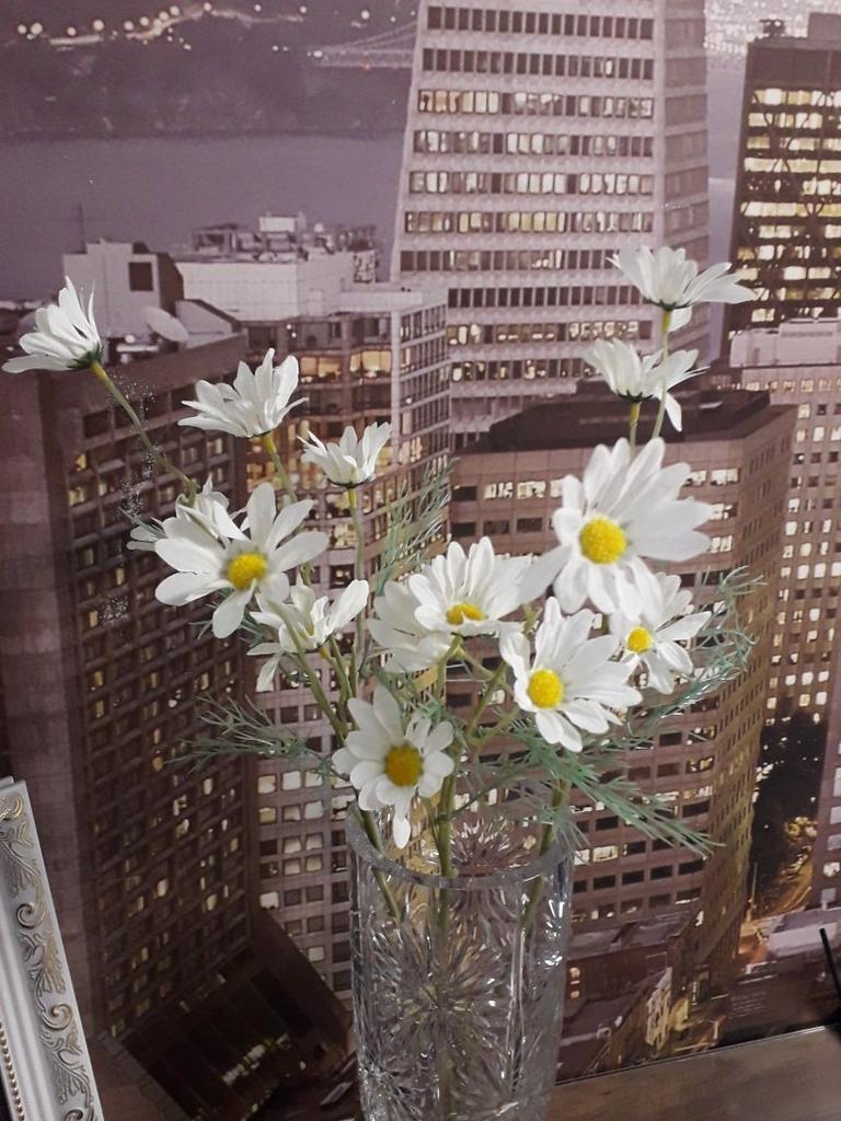 Daisies are wonderful, only one more branch was needed, then it would have looked better. Thanks for the decoration.