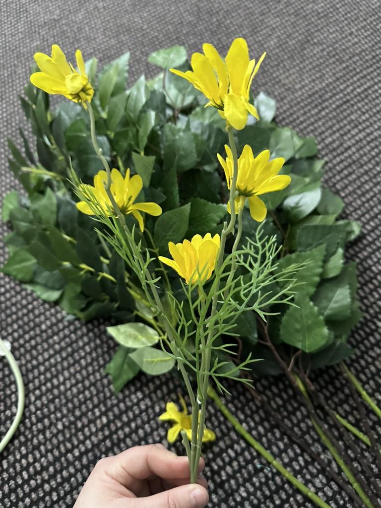 It seems that the set was assembled from different bouquets. The color of the stems is very different from the color of the leaves. This is no good at all!