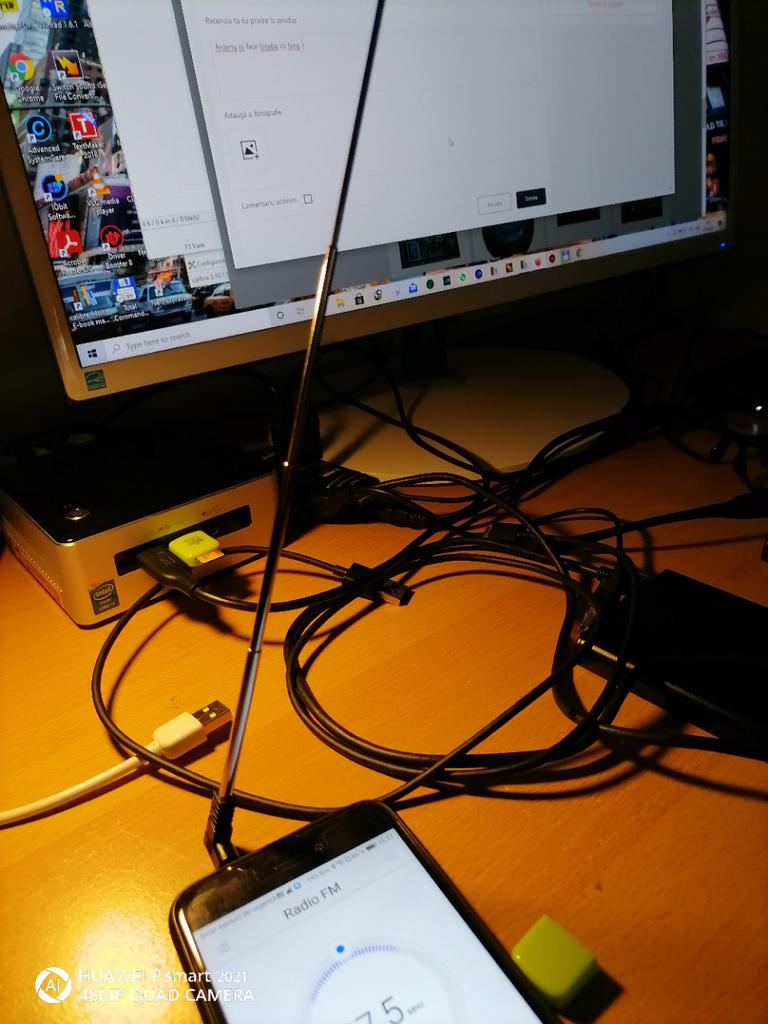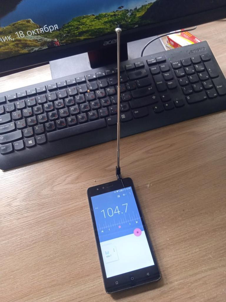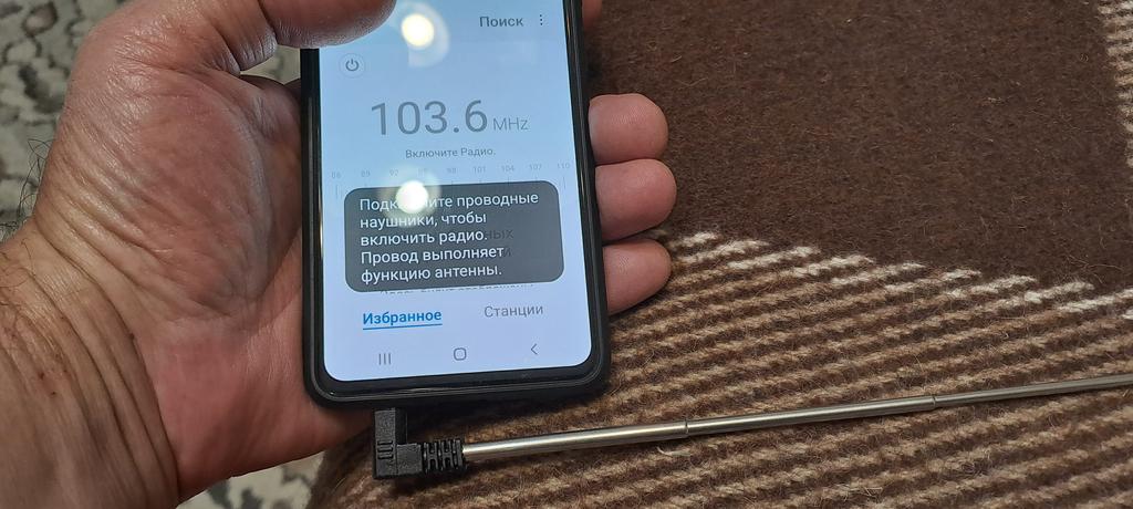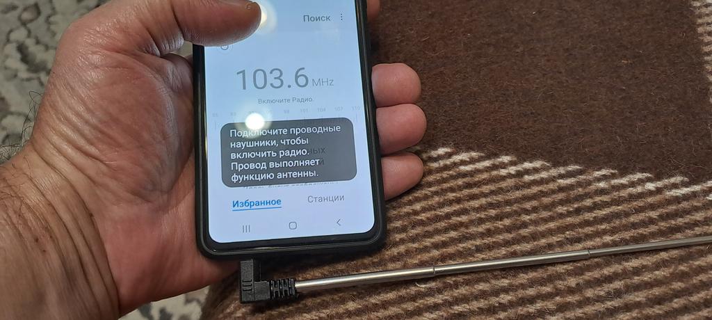 The plug is hanging in the 3-phone socket. When you turn on the radio, the screen displays the message "connect the headphones, they act as an antenna"