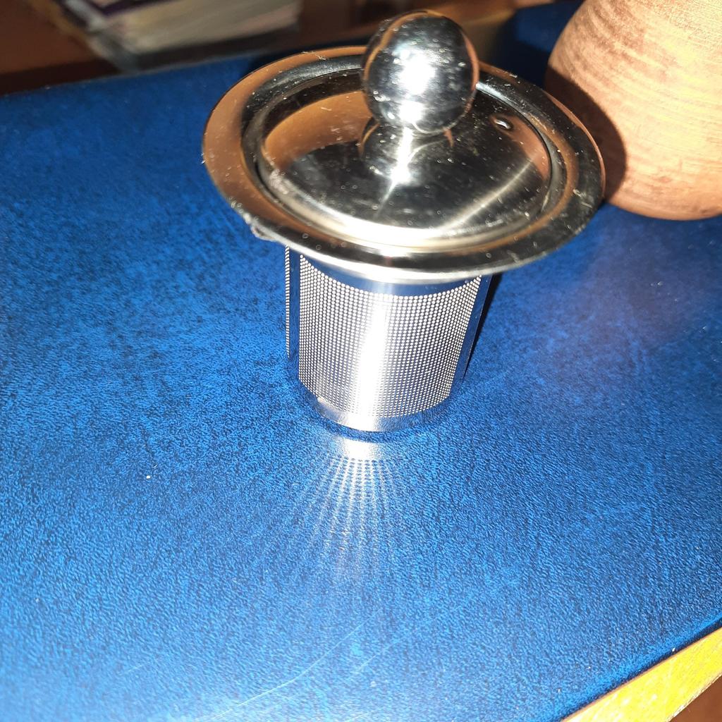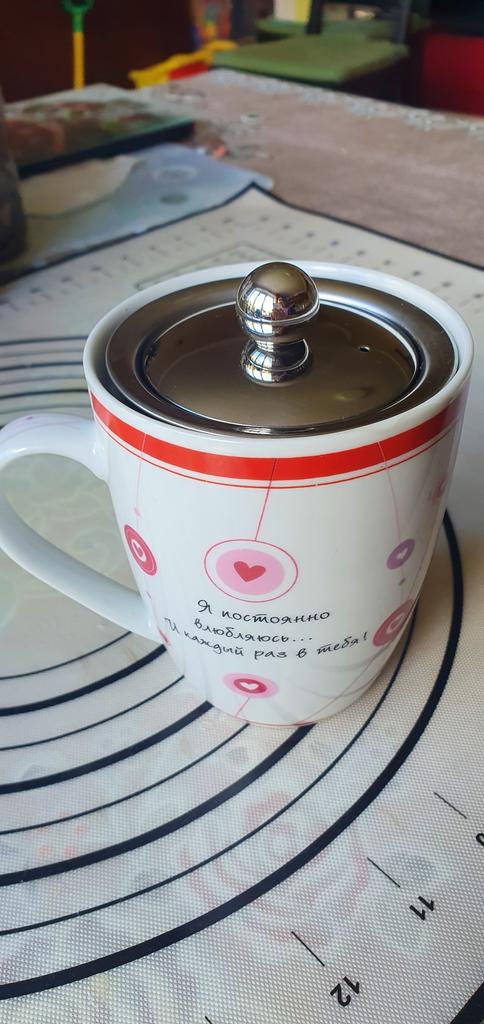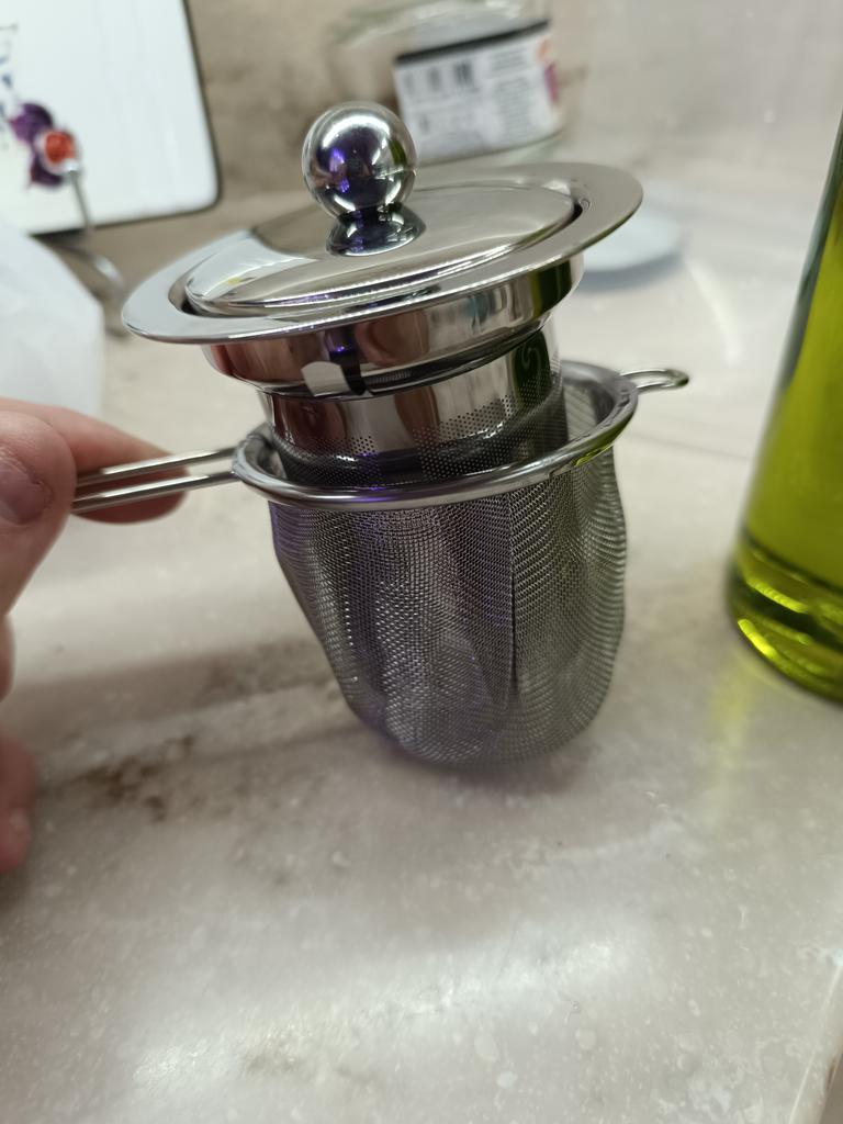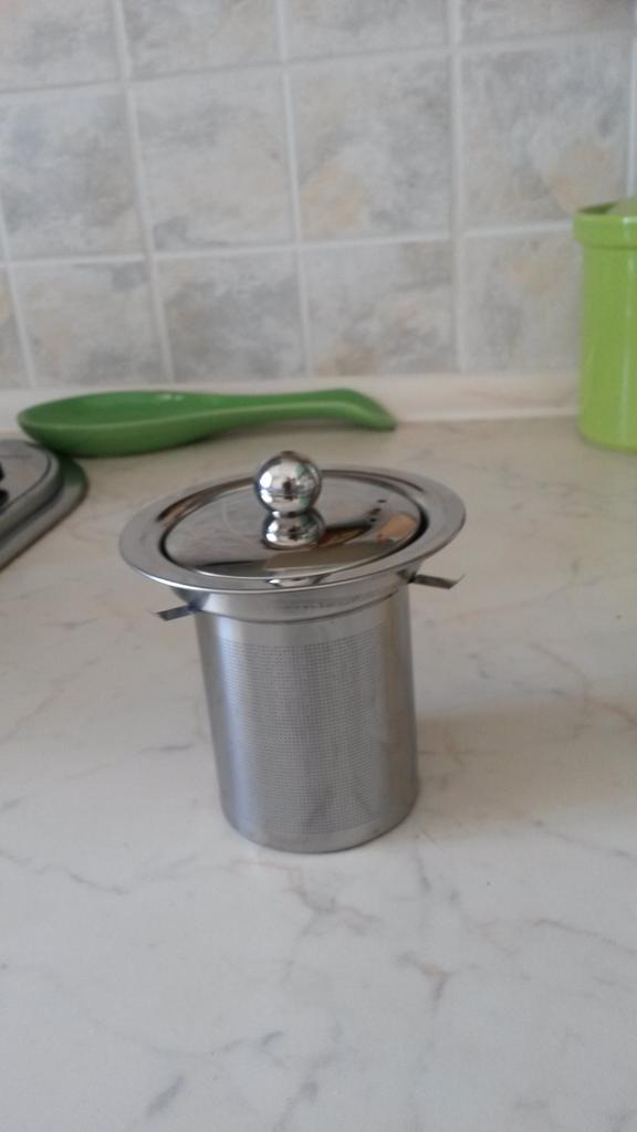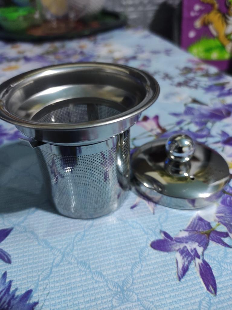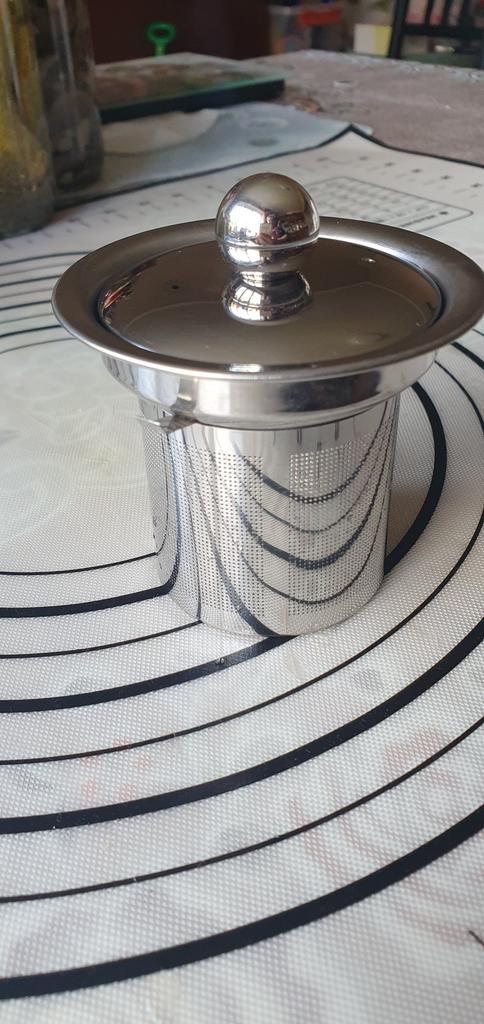 Excellent reusable tea strainer, made of stainless steel (I've been using the same one for a long time) "Fine-mesh", with "strong walls" is convenient to use, especially because it has 3 additional plates that hold the strainer tightly in mugs of different diameters, and a beautiful lid is a nice bonus so that the tea does not cool down!!!