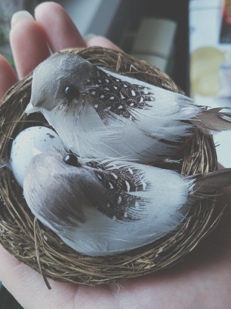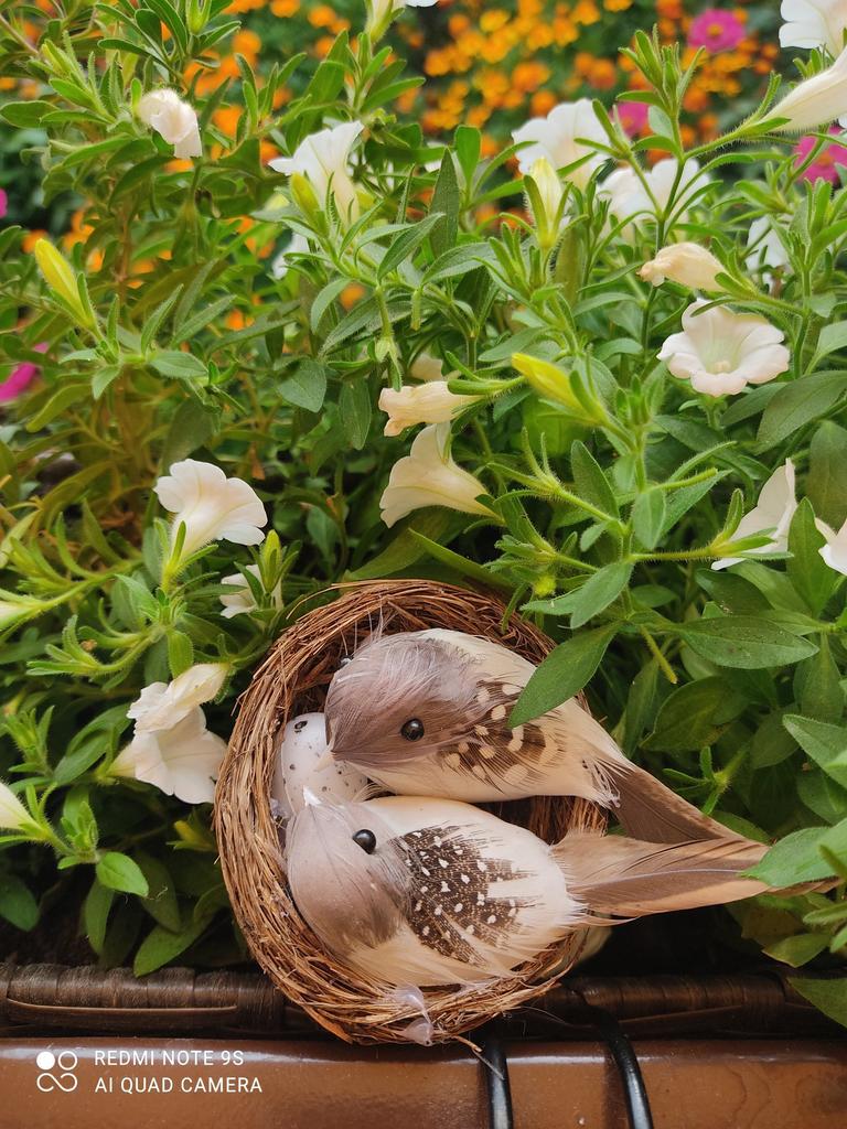 I was happy as a little girl, I put the beautiful birds where the indoor flowers were