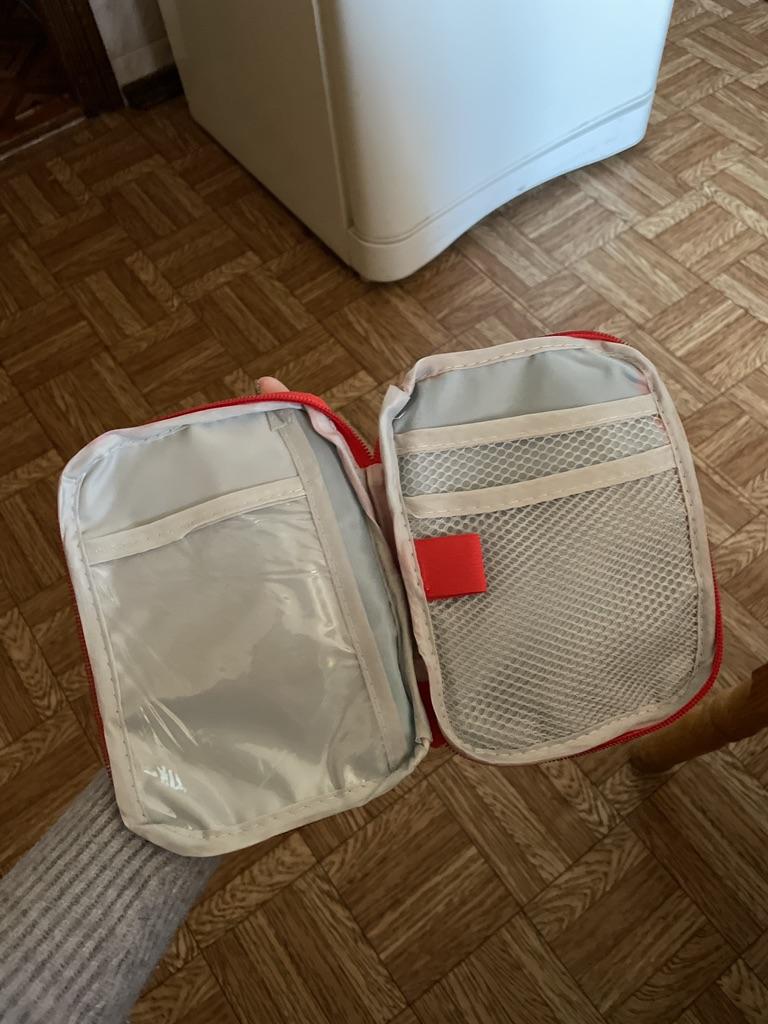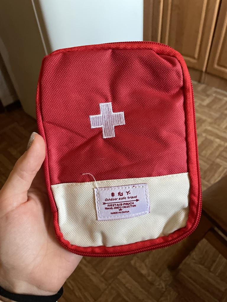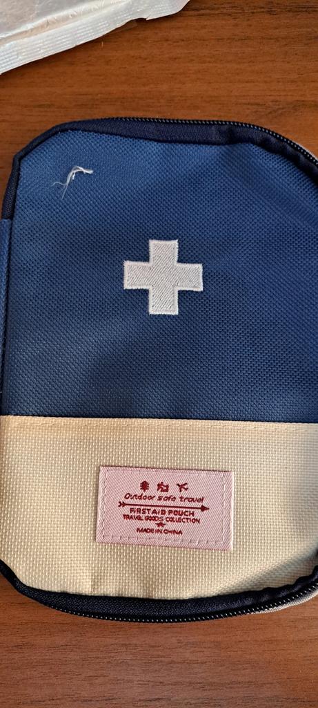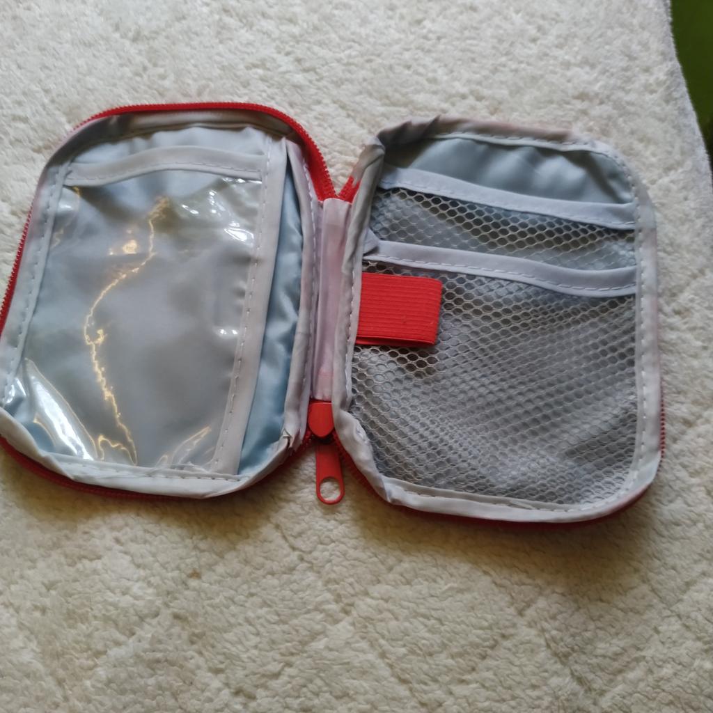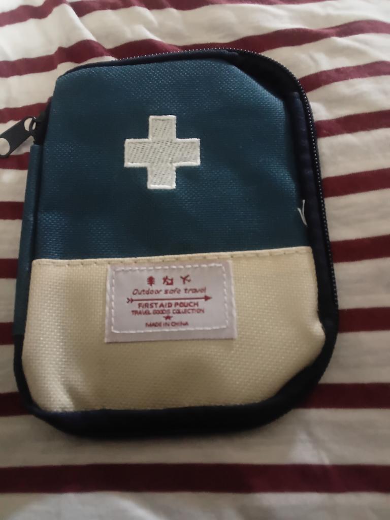 A convenient travel first aid kit that easily fits into a handbag. Roomy enough.