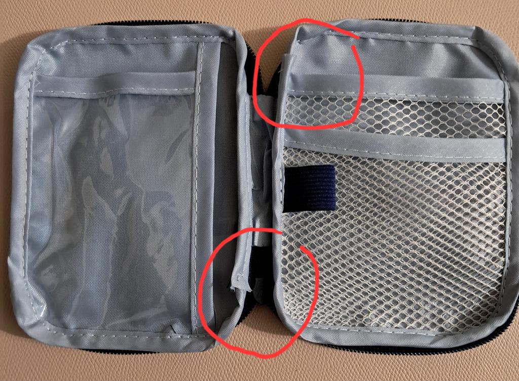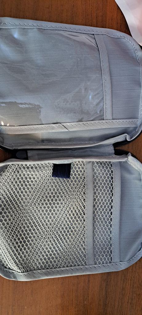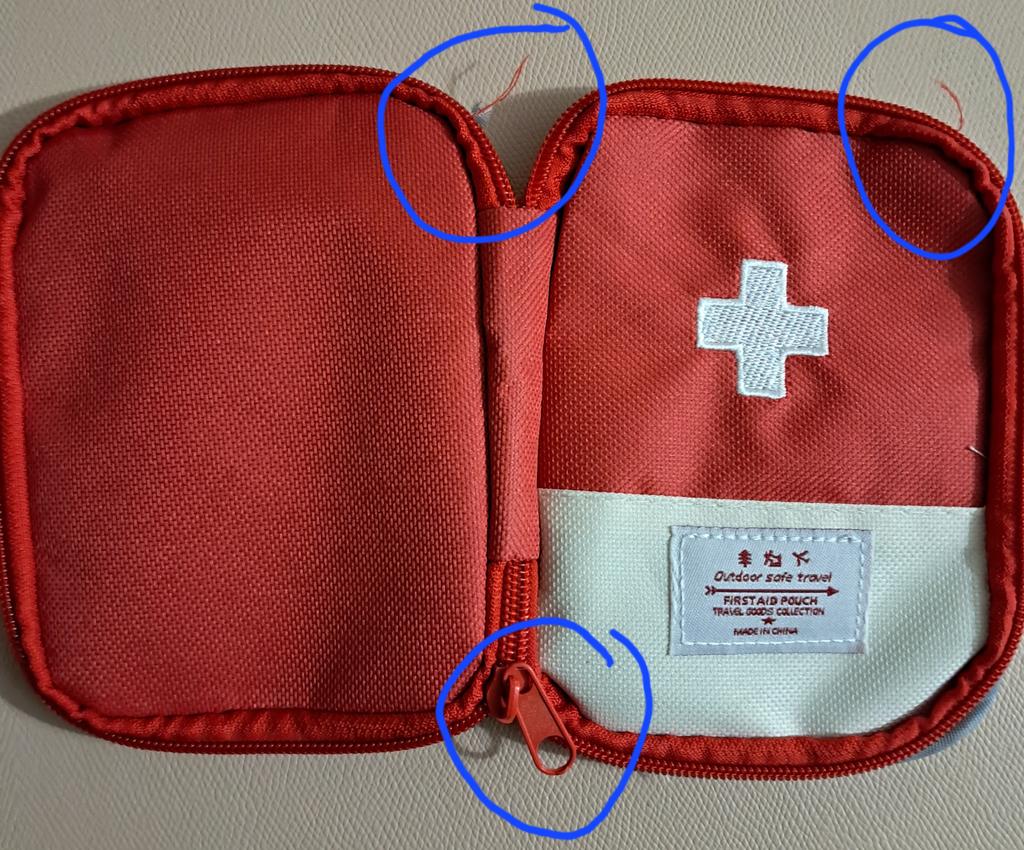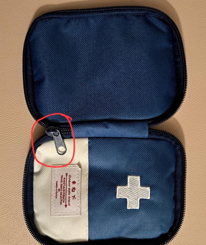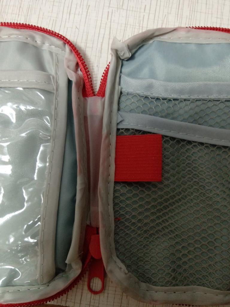 A convenient travel first aid kit that easily fits into a handbag. Roomy enough.