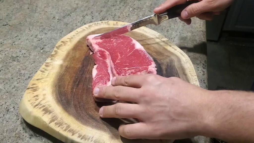 This is definitely a good fillet knife! It cut through this t-bone steak quite nicely. I would recommend sharpening it a bit though. The handle is very comfortable and easy to use.