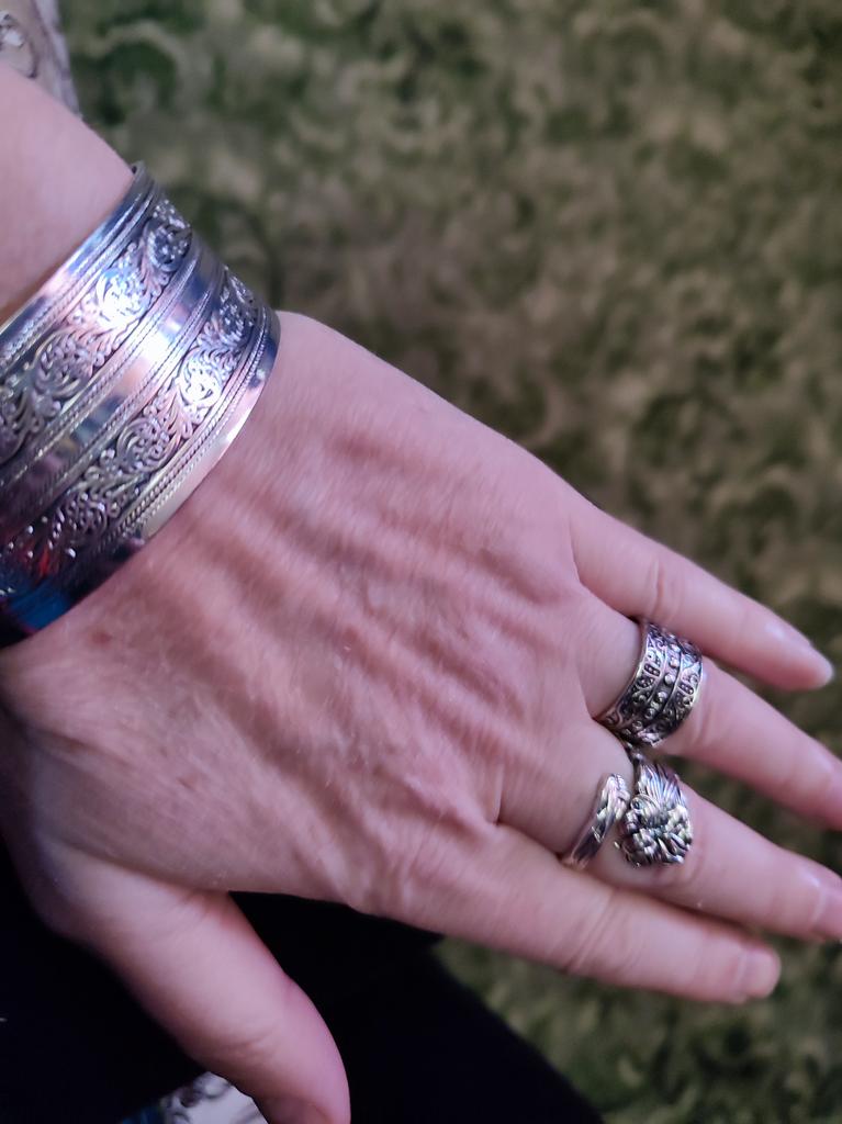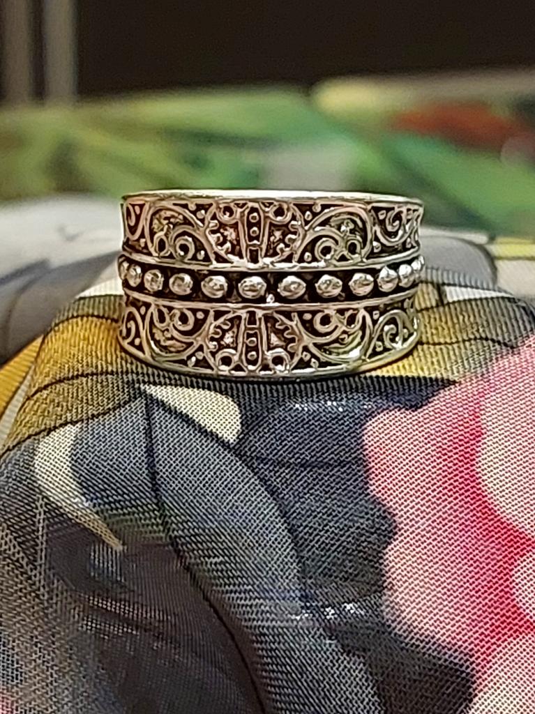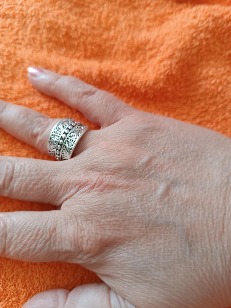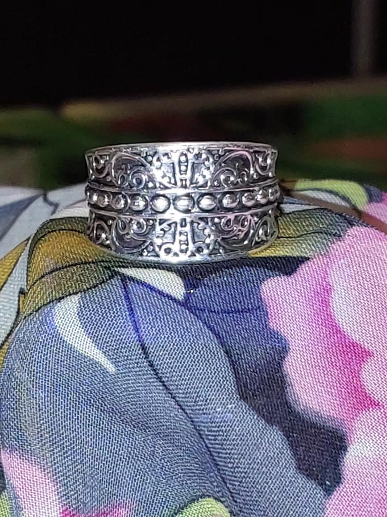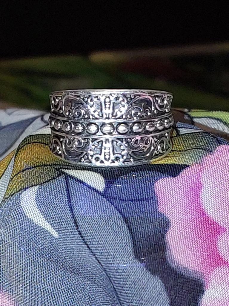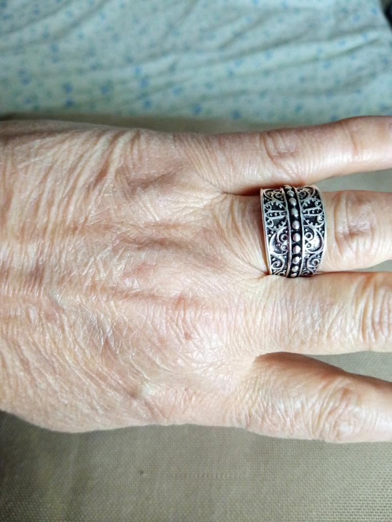 Just arrived, beautiful silver band, at least I think, with a rose design that makes it special. Recommended 👍