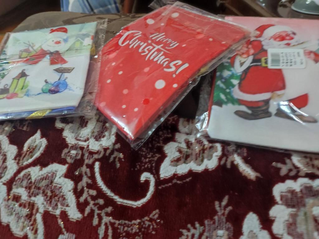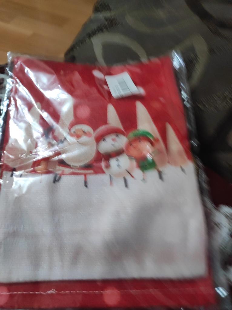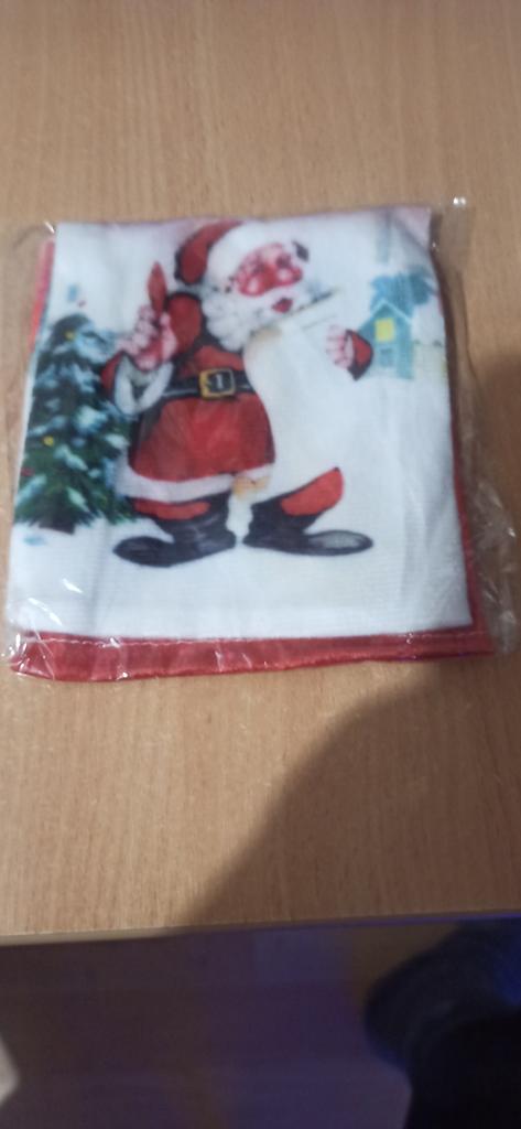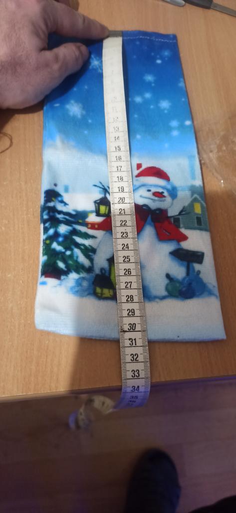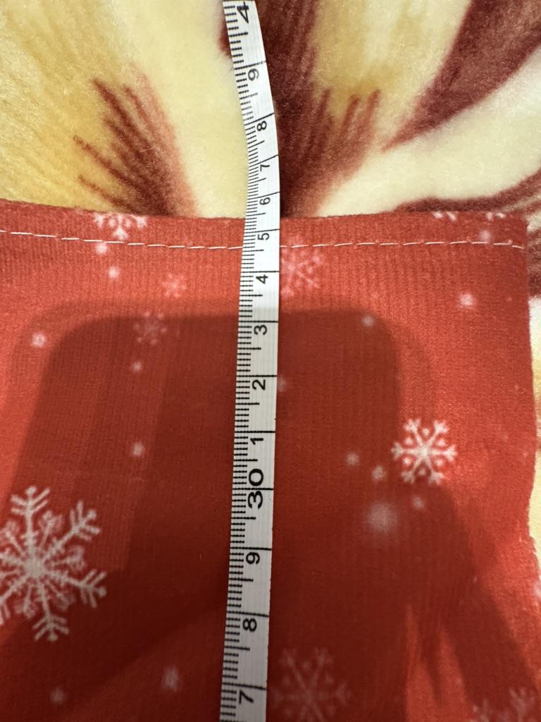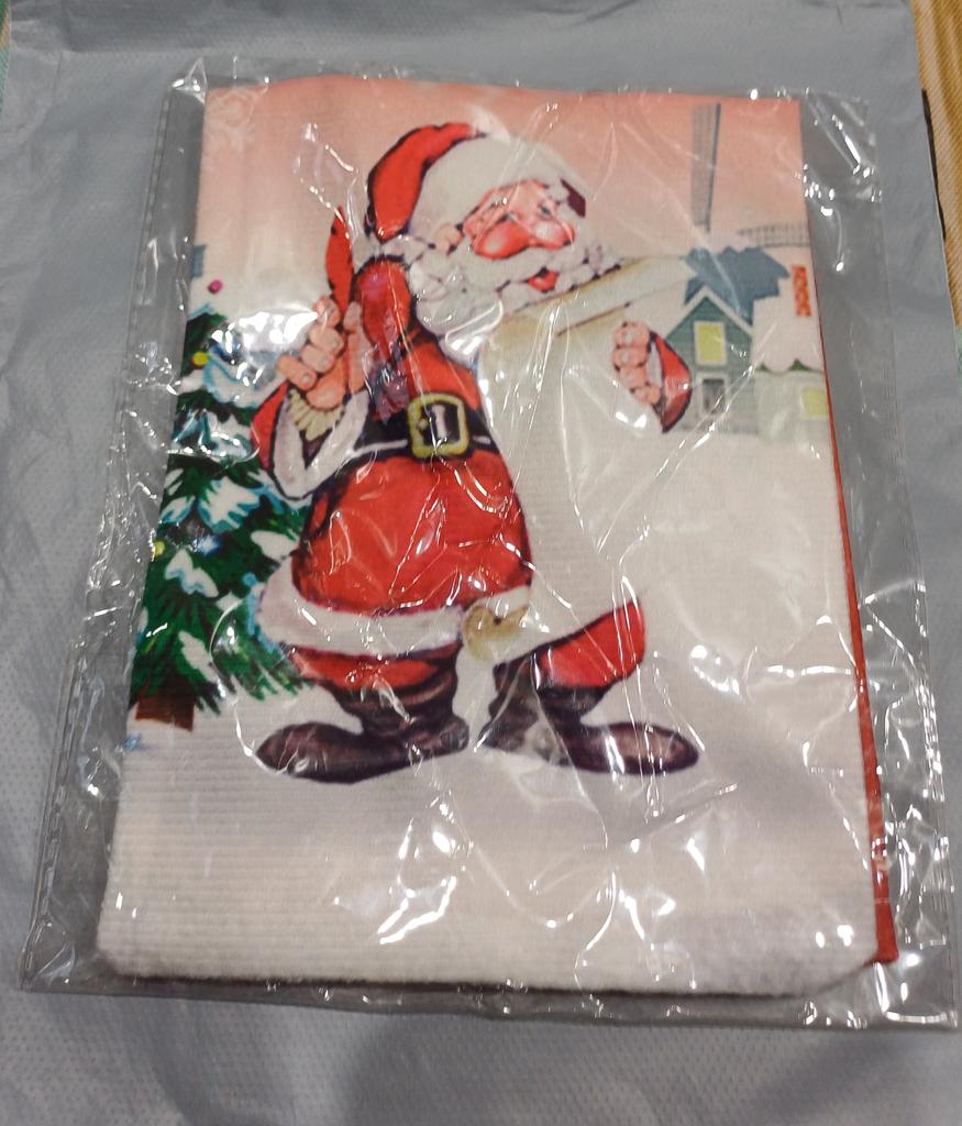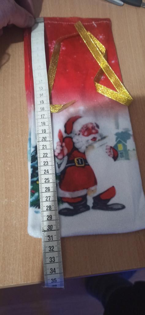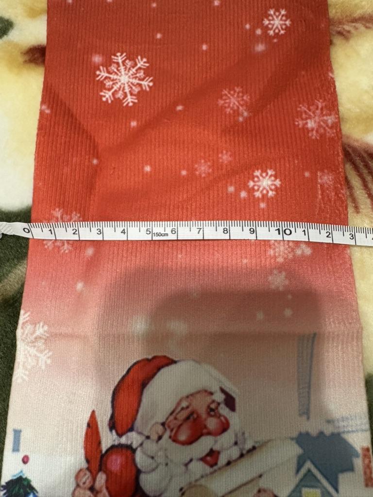 The picture is blurred. The outline of Santa Claus is not black. The material is light velour, thin