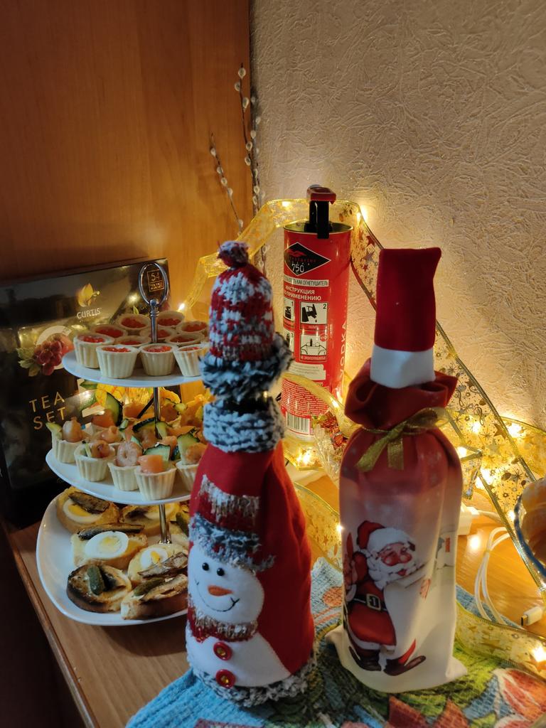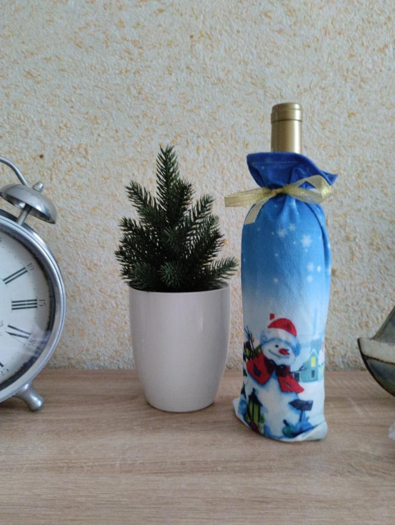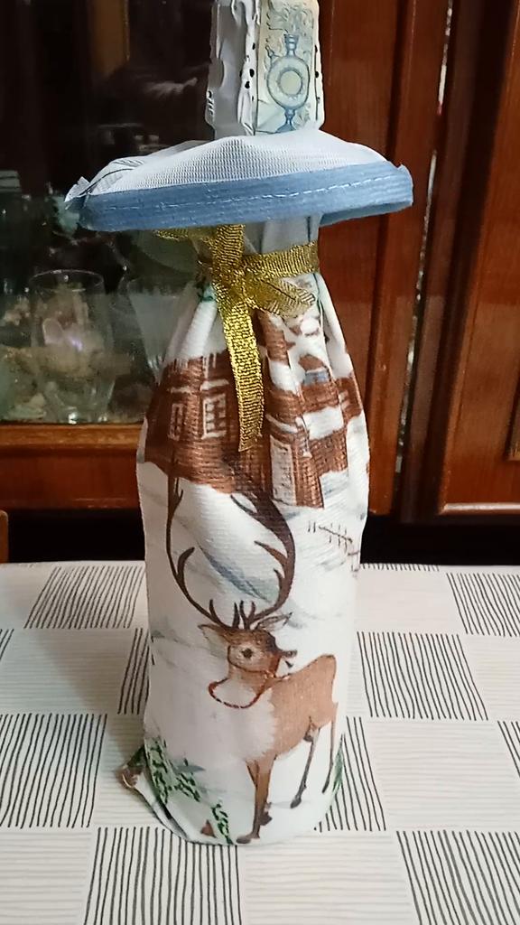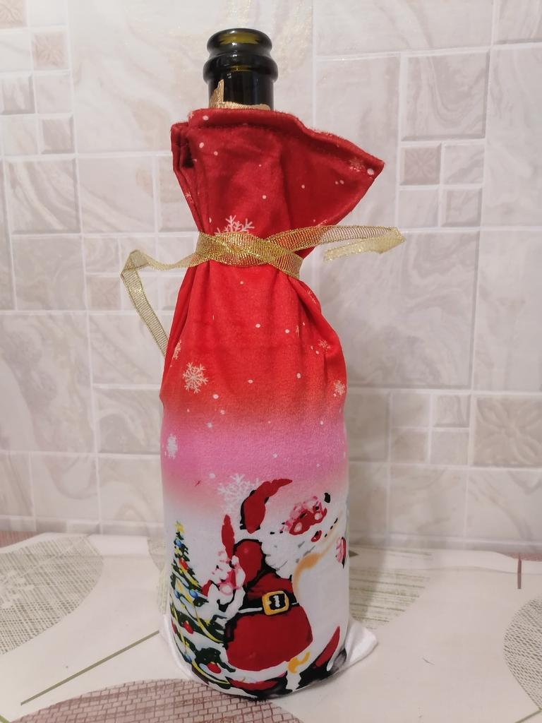 Another wine bottle cover that brightens up the Christmas table with its appearance, not just its contents.