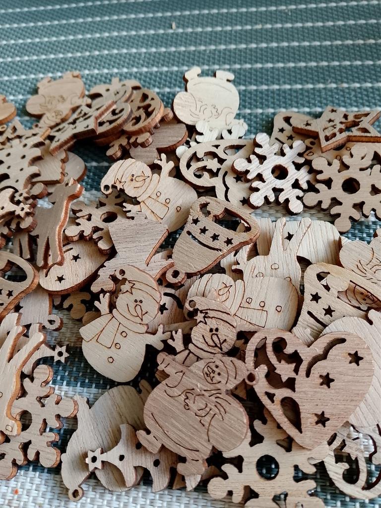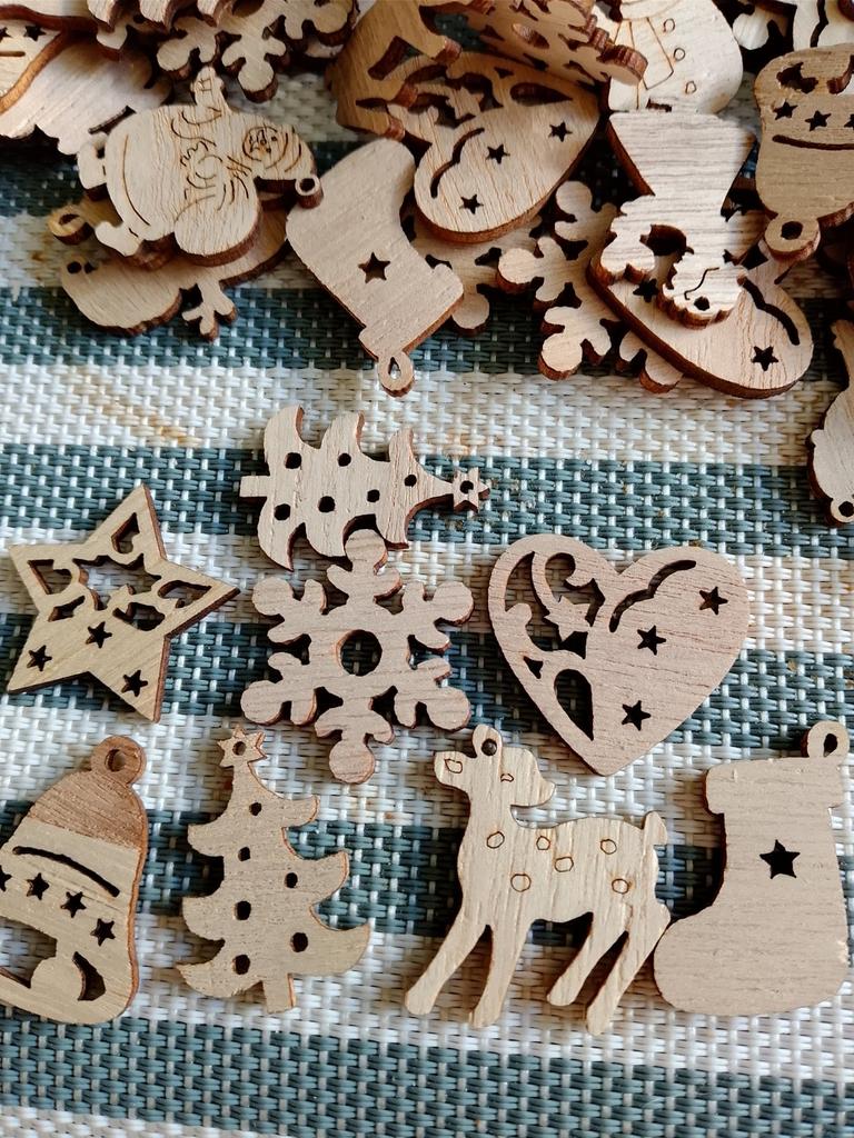 100Pcs/Set Christmas Decorations Environmental Protection Natural Retro Color Cartoon Wood Chips