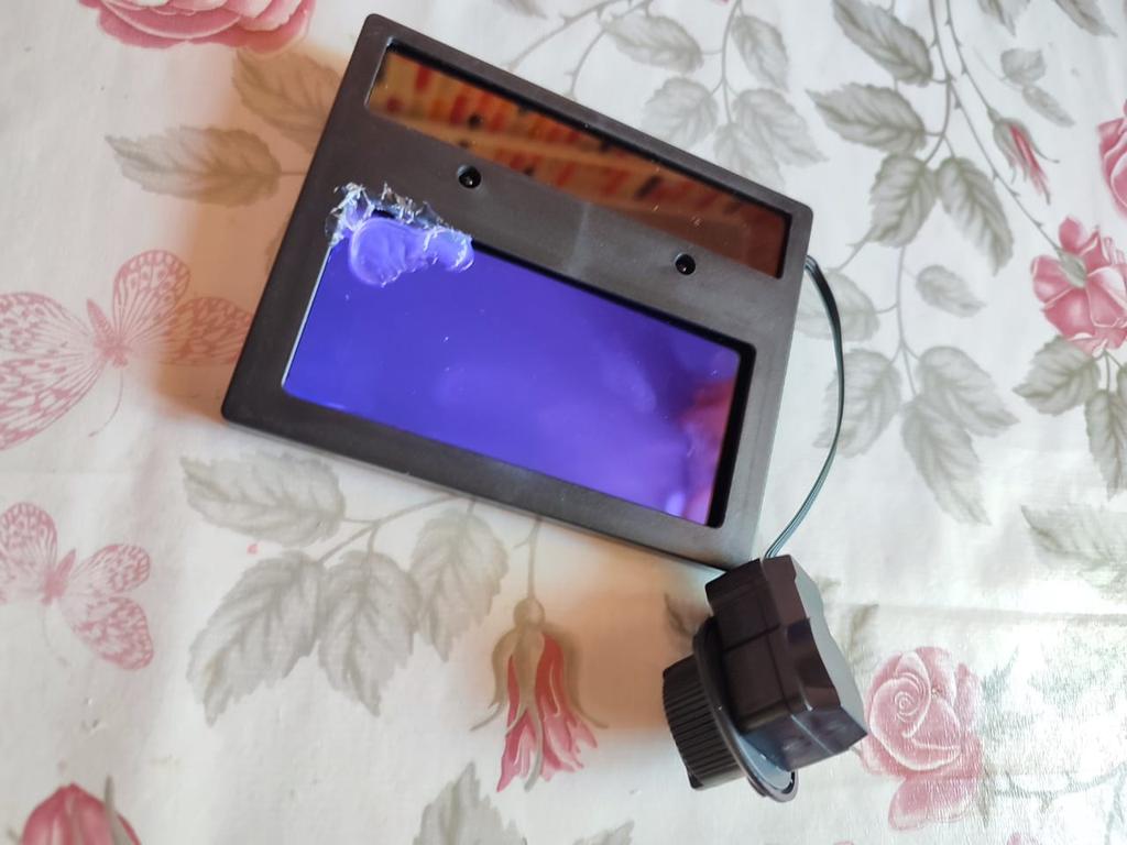 The light filter for the welding mask is defective, the bottom on the left side does not darken, and over time it will die completely, this has already happened...
