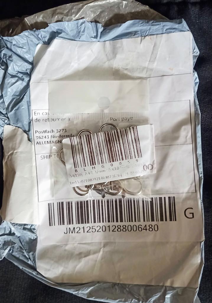 received Monday February 7, 2022, well by the seller who has met his deadlines. They are small but ideal for making key rings or small bags, very happy, although the bag was broken, all 10 arrived. Recommended