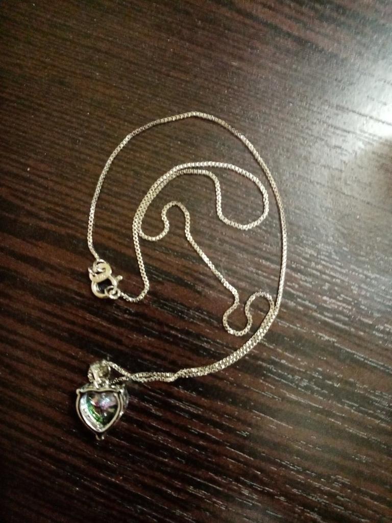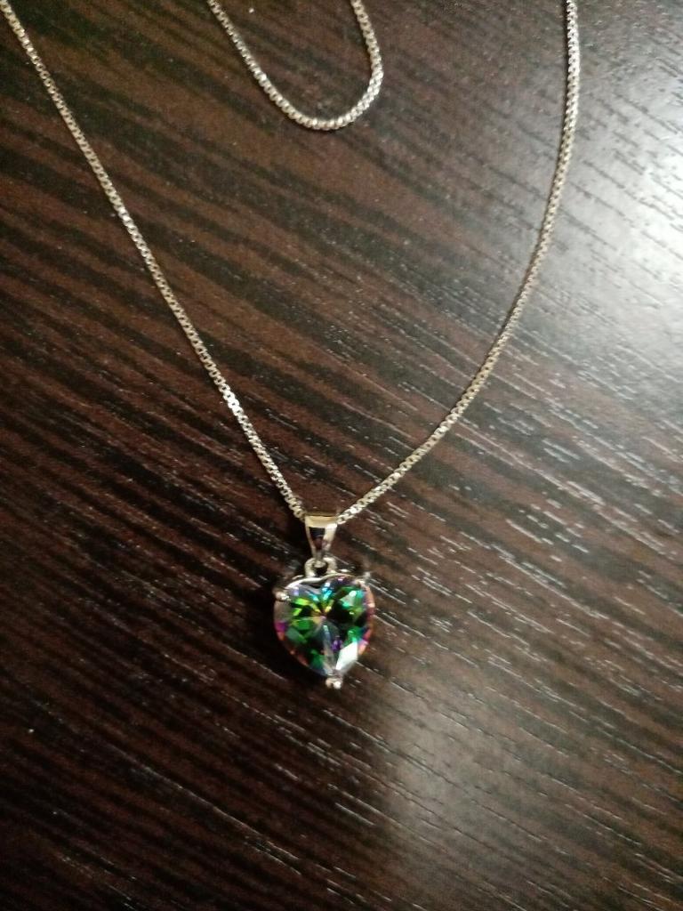 I bought this necklace because I thought it was really beautiful 🤩 I received the necklace after 3-4 weeks 🤩 Benefits 🤩 🤩 beautiful necklace 🤩 the stone becomes rainbow colored depending on how you look 🤩 it is heart-shaped 🤩 both for everyday life and parties 🤩 beautiful detail around the edge 🤩 no sharp edges Disadvantages 🙄 🙄 the stone may risk falling off at some point 🙄 the chain is not that long The necklace is made of cups (unfortunately I don't know more) I absolutely love the necklace 🤩 it's really beautiful. The stone shines in different colors 🤩 the heart shape gives it a sweet look. It's a necklace that you can use both on a daily basis but also for a party 🤩 I absolutely love it 👍 Can be highly recommended 🤩👍