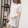 Plus Size WONDERFUL DAY Print Long T Shirts Summer Women Loose Slit Femme Tops Cotton Tshirt Short Sleeve Ladies T-shirt