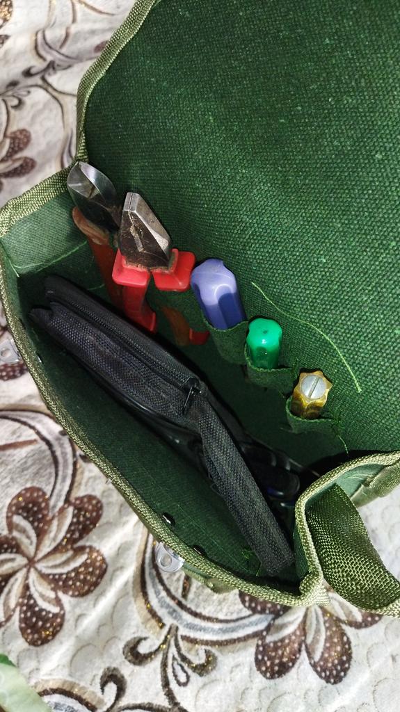 The material is strong, the capacity is good. The only BUT who designed this product has no idea about the length of the screwdriver handles. Especially dielectric. If you insert them into the slots intended for them, then it will be problematic to close the bag with locks.