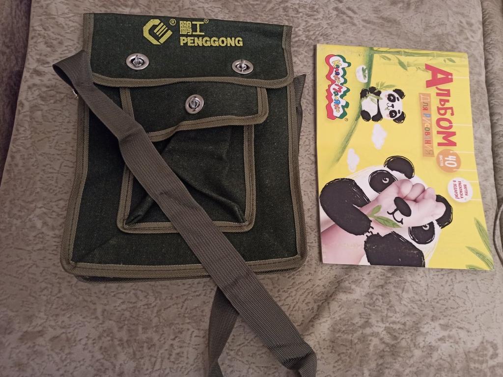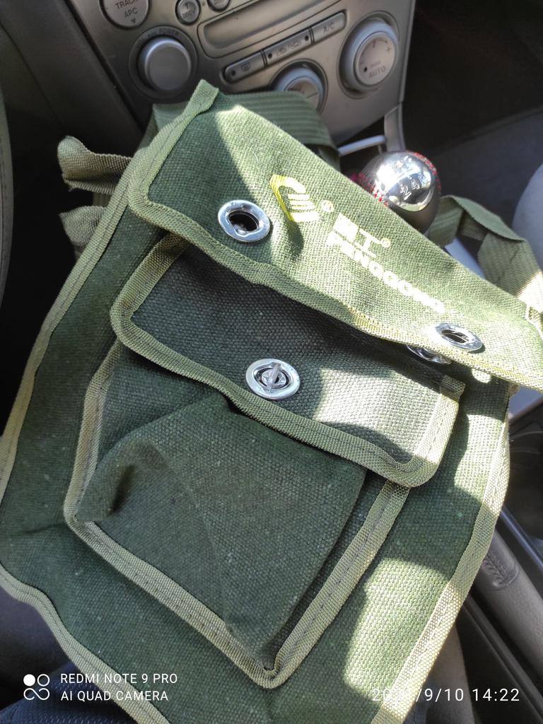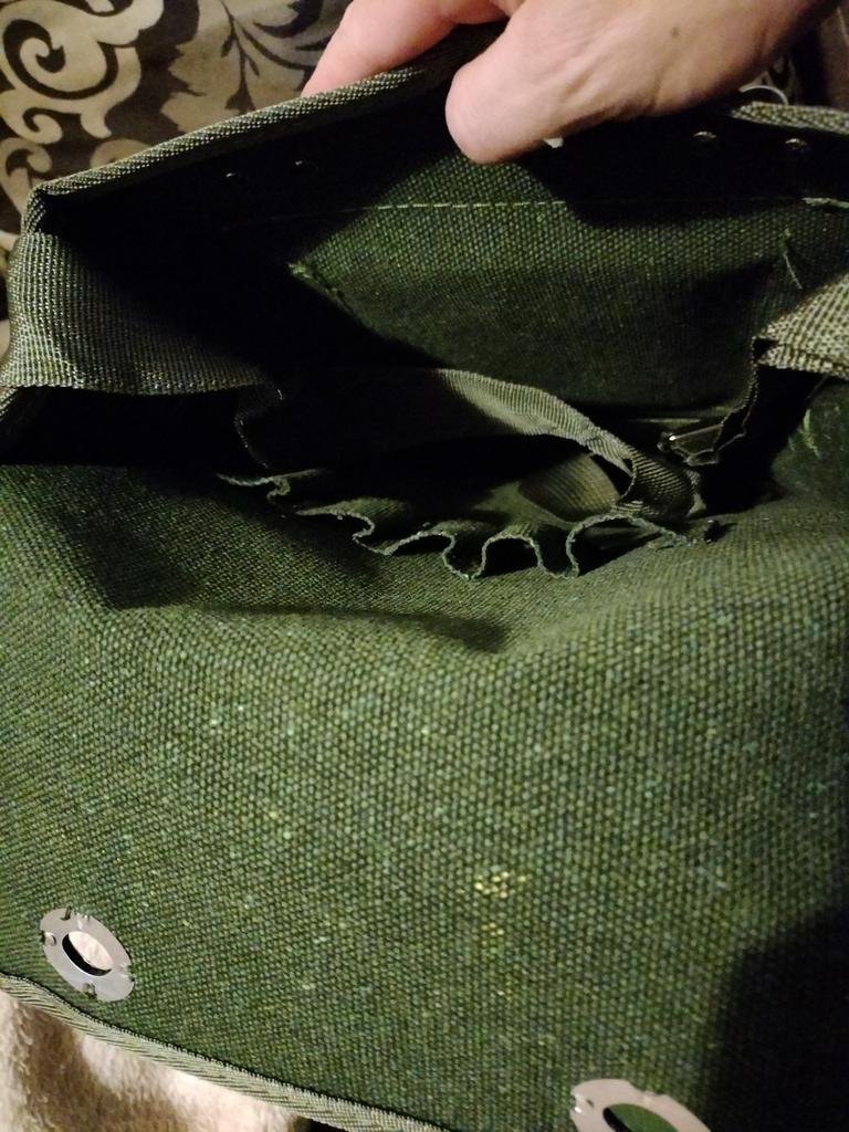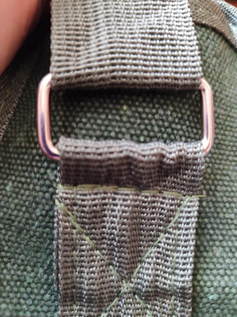 The parcel took a month. The bag is made of thick fabric, sewn neatly. The metal fasteners are slightly offset to the side, but they fasten.