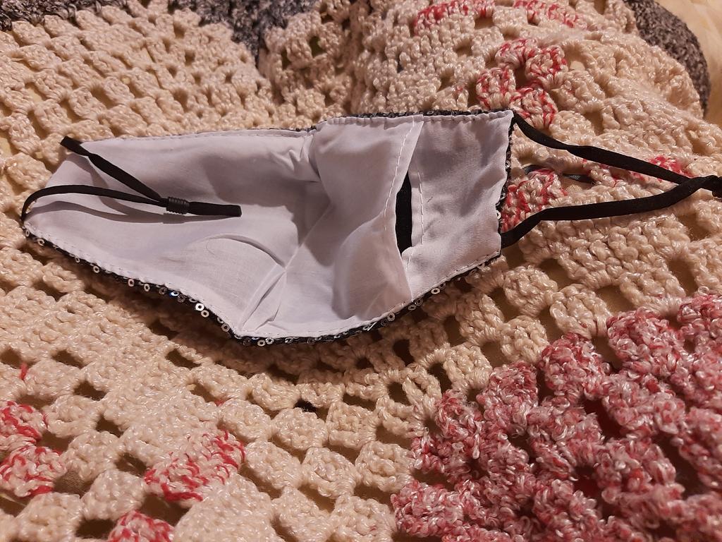 Favorite kind of mask for me. Elegant, cotton and with a special place to put a silver ion filter, or one with carbon fiber!