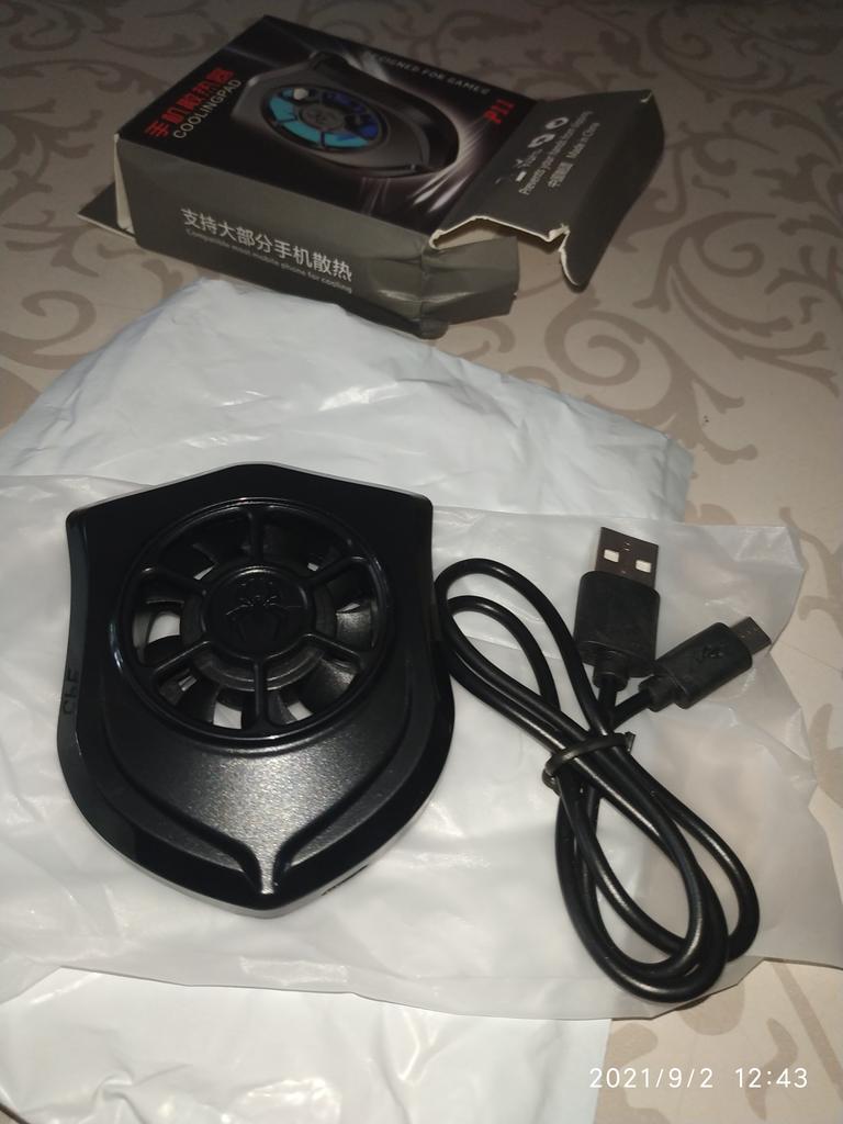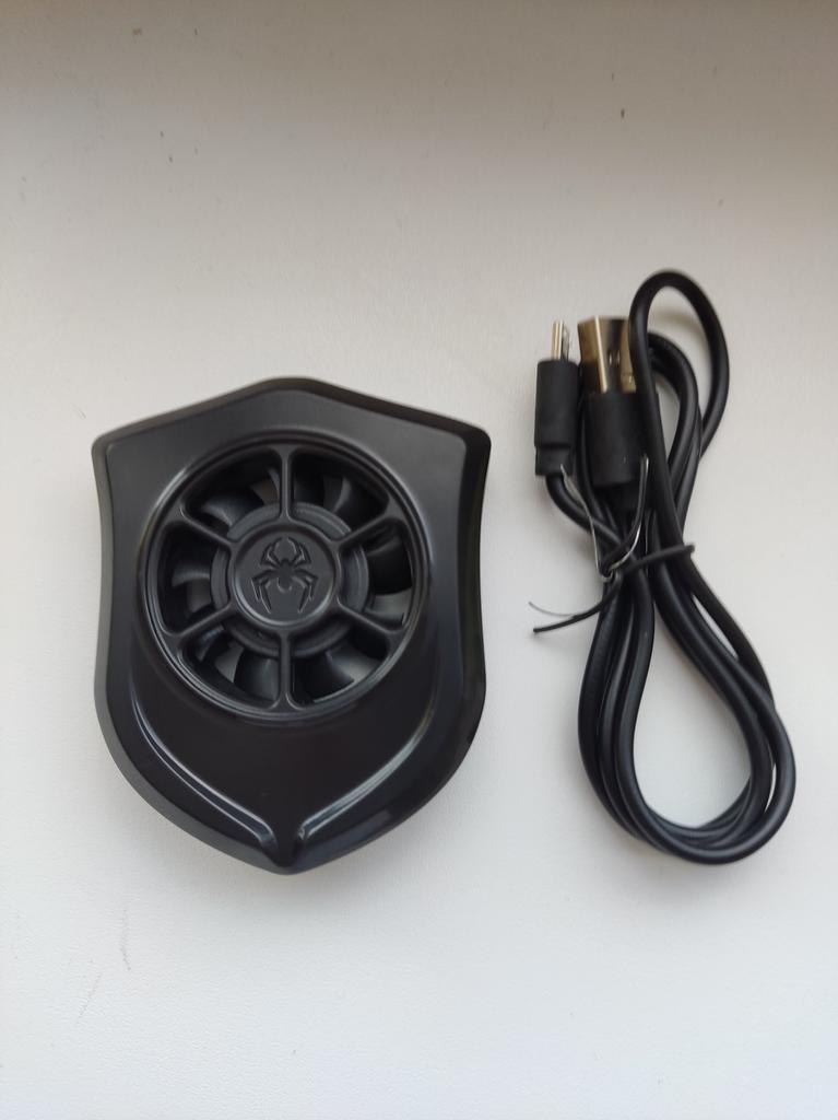 My son ordered for himself. It looks like a small fan with suction cups. A small fan with three paws spins inside. Connects to Powerbanku and power comes from it.